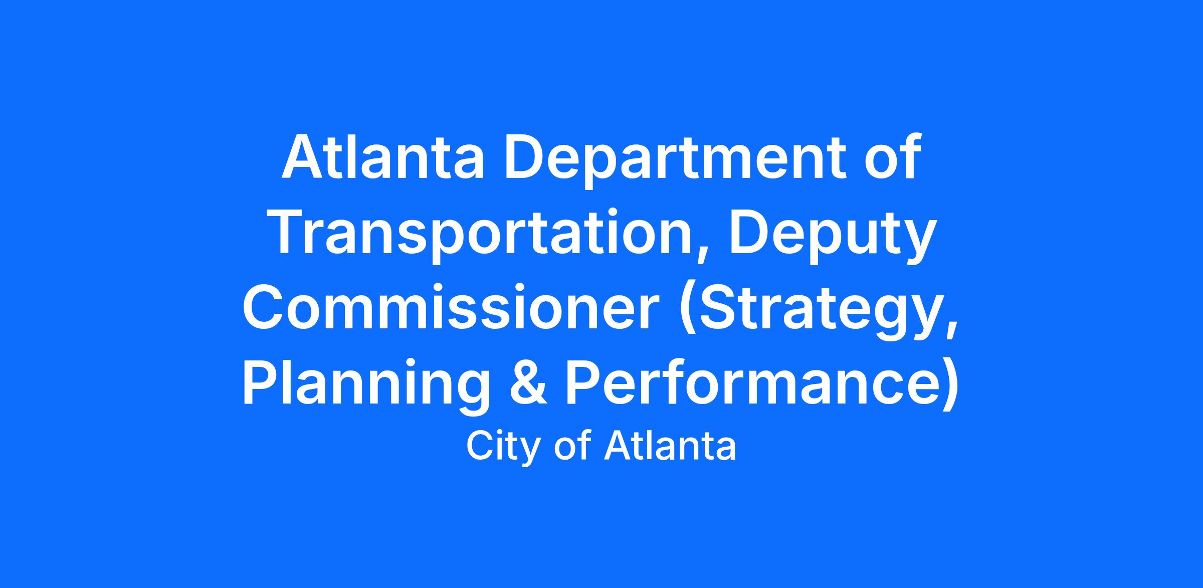 The Atlanta Department of Transportation’s Deputy Commissioner, Strategy Planning, and Performance focuses on driving strategic allocation of resources and ensuring the achievement of the ATLDOT Strategic Transportation Plan. Duties include but are not limited to: providing professional and technical staff assistance, providing strategic advice to the Commissioner and/or Mayor’s Office, and managing key strategic initiatives for the department.