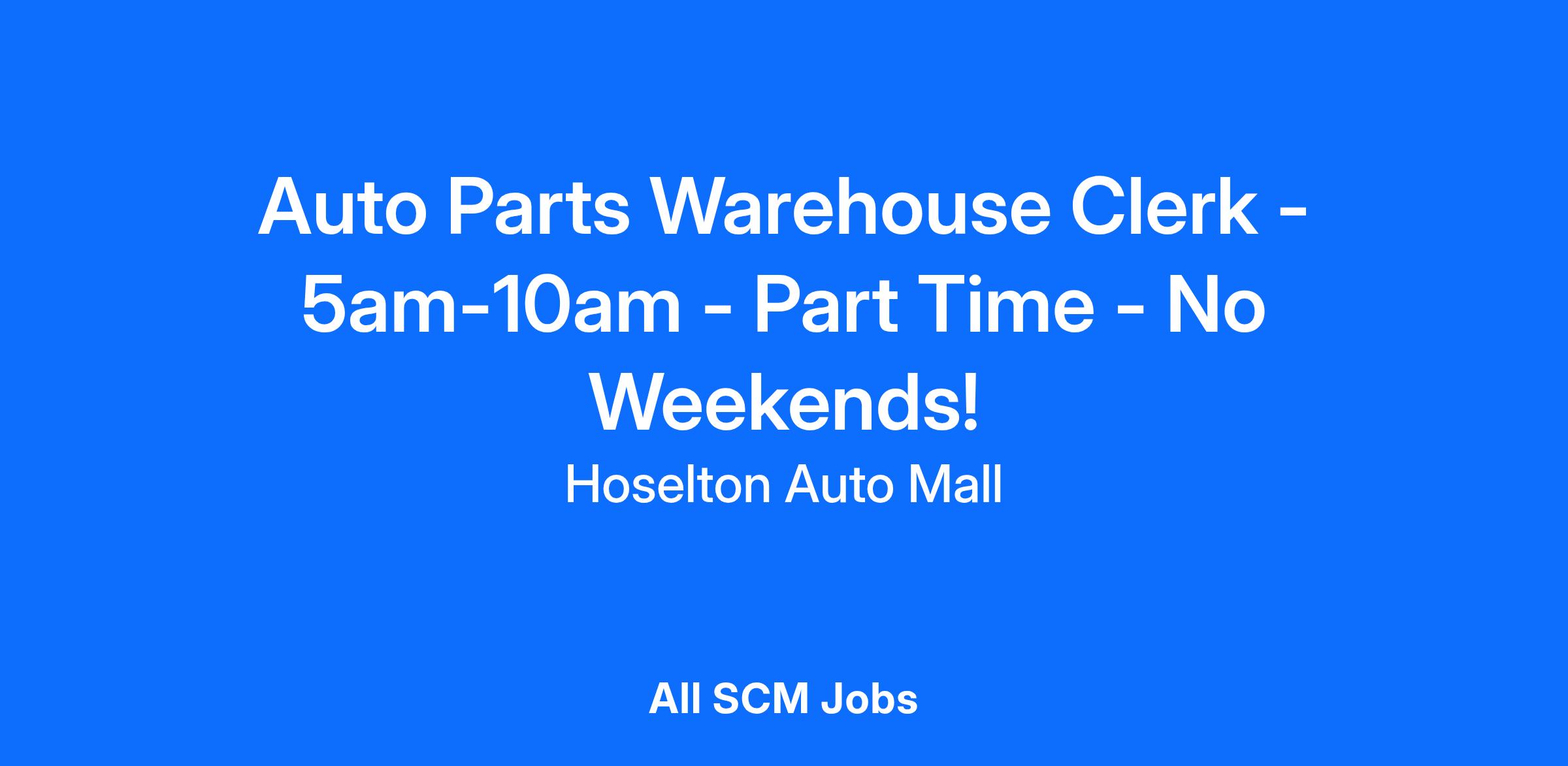 We are looking for a Part-Time Warehouse Clerk for our Wholesale Parts team!