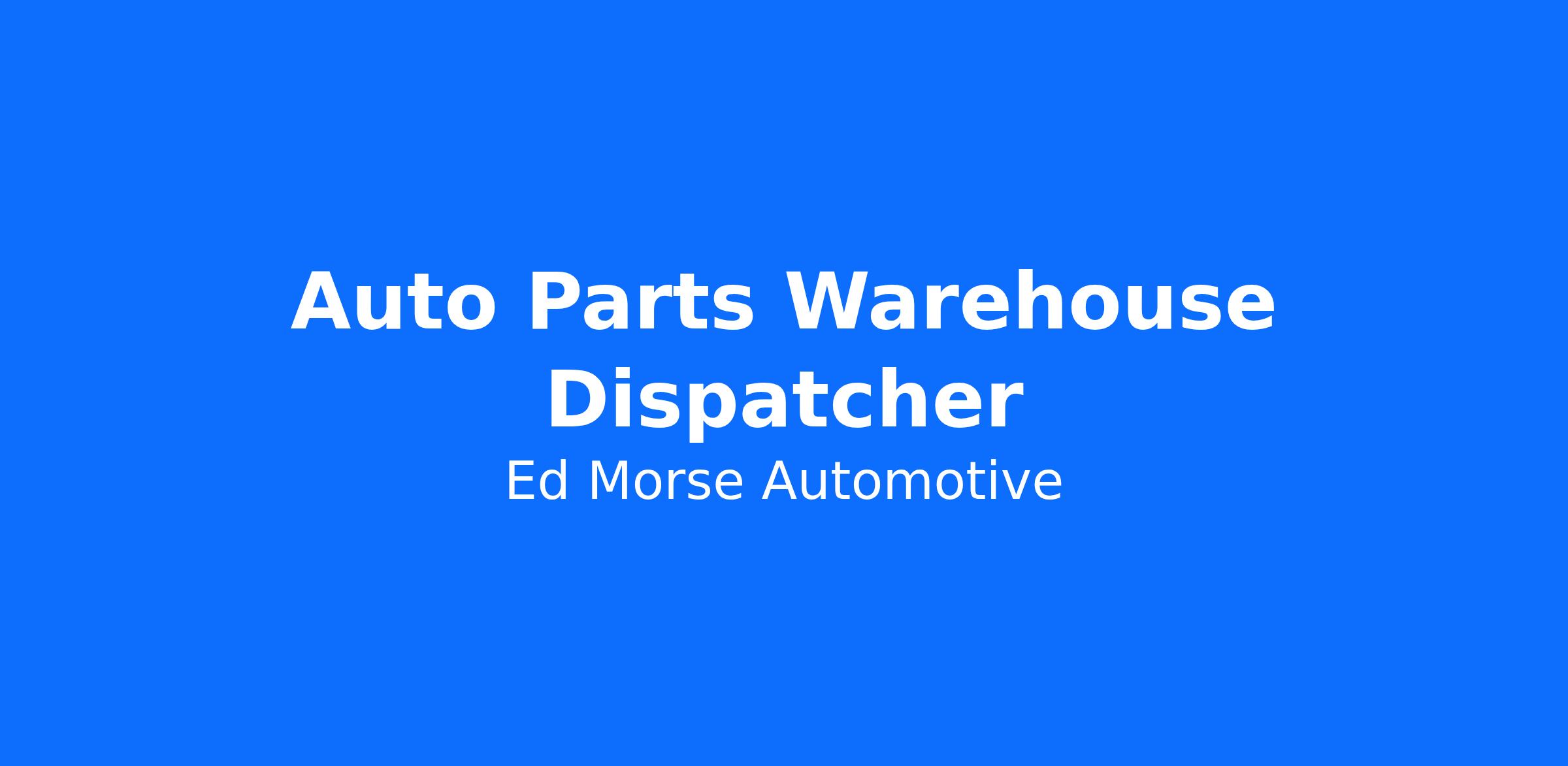 Ed Morse is currently seeking an Automotive WAREHOUSE Dispatcher to join our team.