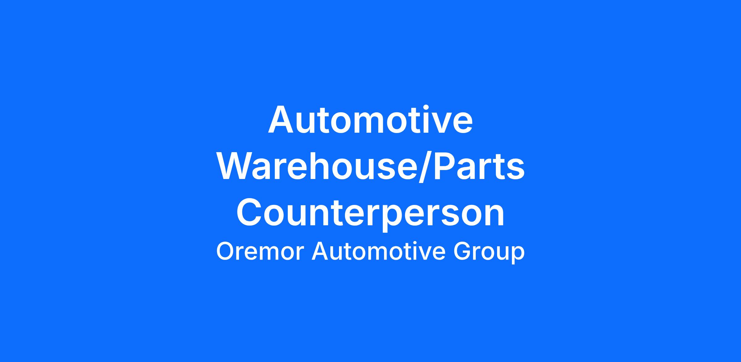 The Automotive Warehouse/Parts Counterperson is extremely knowledgeable about automotive parts and accessories and can accurately answer questions and satisfy customer requirements in person or on the phone. He or she locates automotive parts with light inventory and bin checks. This position will assist with shipping/receiving, handle returns and warranty scraps. In addition to fullfilling pick tickets, bin checks