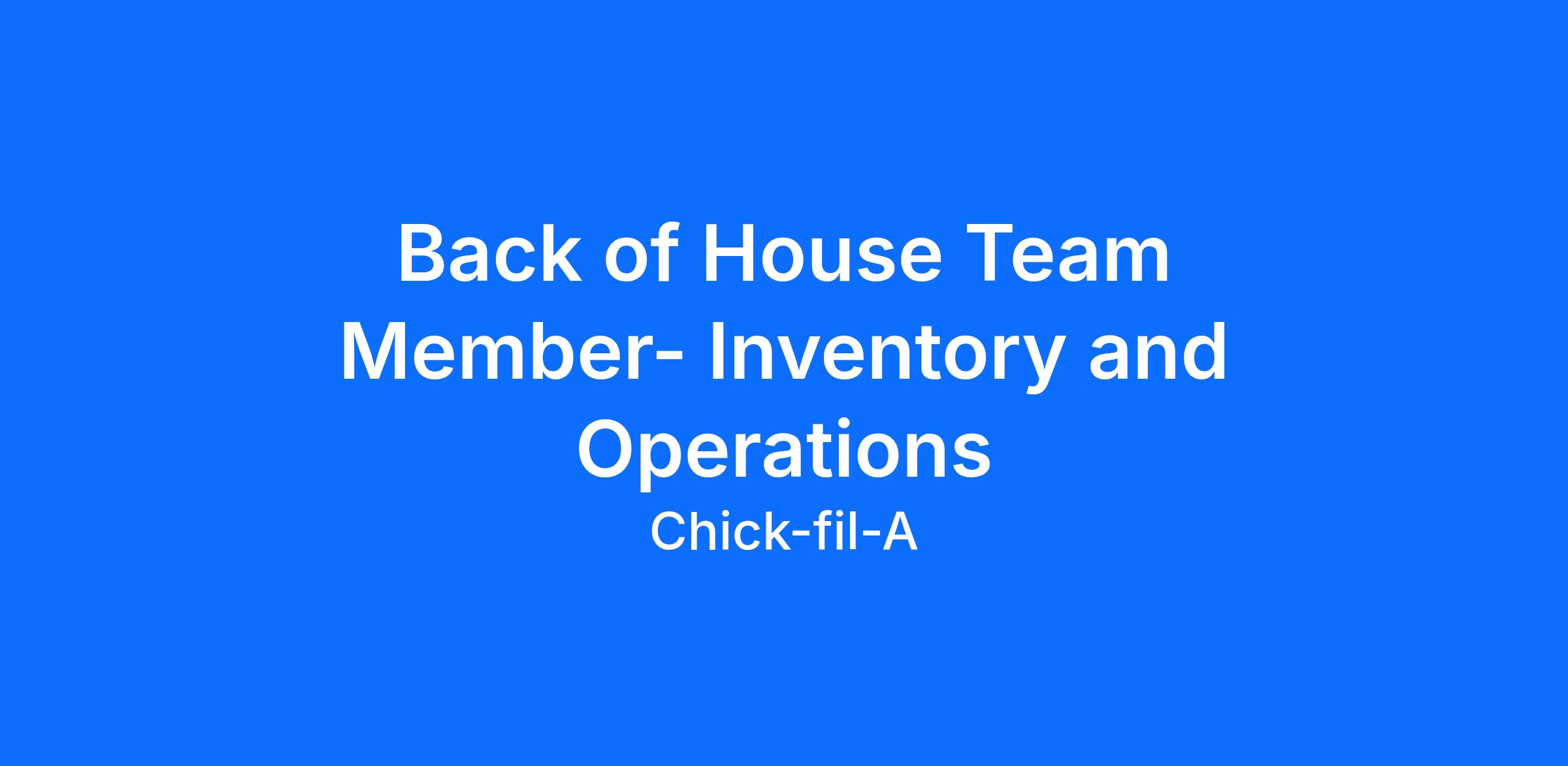 Responsibilities Receive and verify daily deliveries for accuracy and quality Organize and properly store products following Chick-fil-A and food safety standards Rotate and label inventory using FIFO practices Break down boxes and maintain a clean storage area Complete daily kitchen cleaning tasks, including cleaning and maintaining filters Support the kitchen team with prep, stocking, and general tasks as needed Ensure all work areas remain clean, safe, and organized Communicate with leadership regarding inventory or product concerns