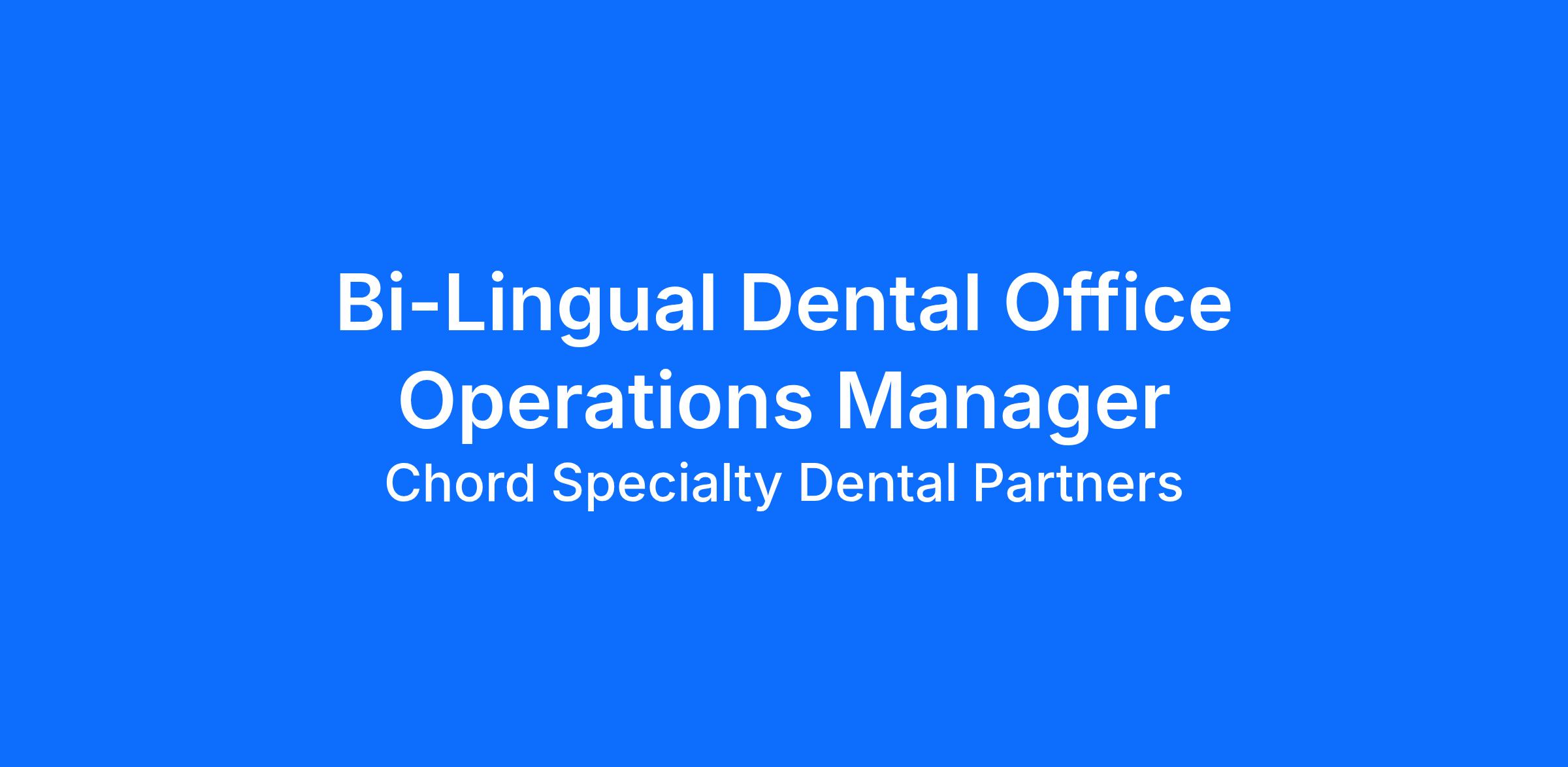 CHORD Specialty Dental Partners is seeking a highly organized and detail-oriented Dental Office Operations Manager to oversee the smooth functioning of our pediatric dental office.