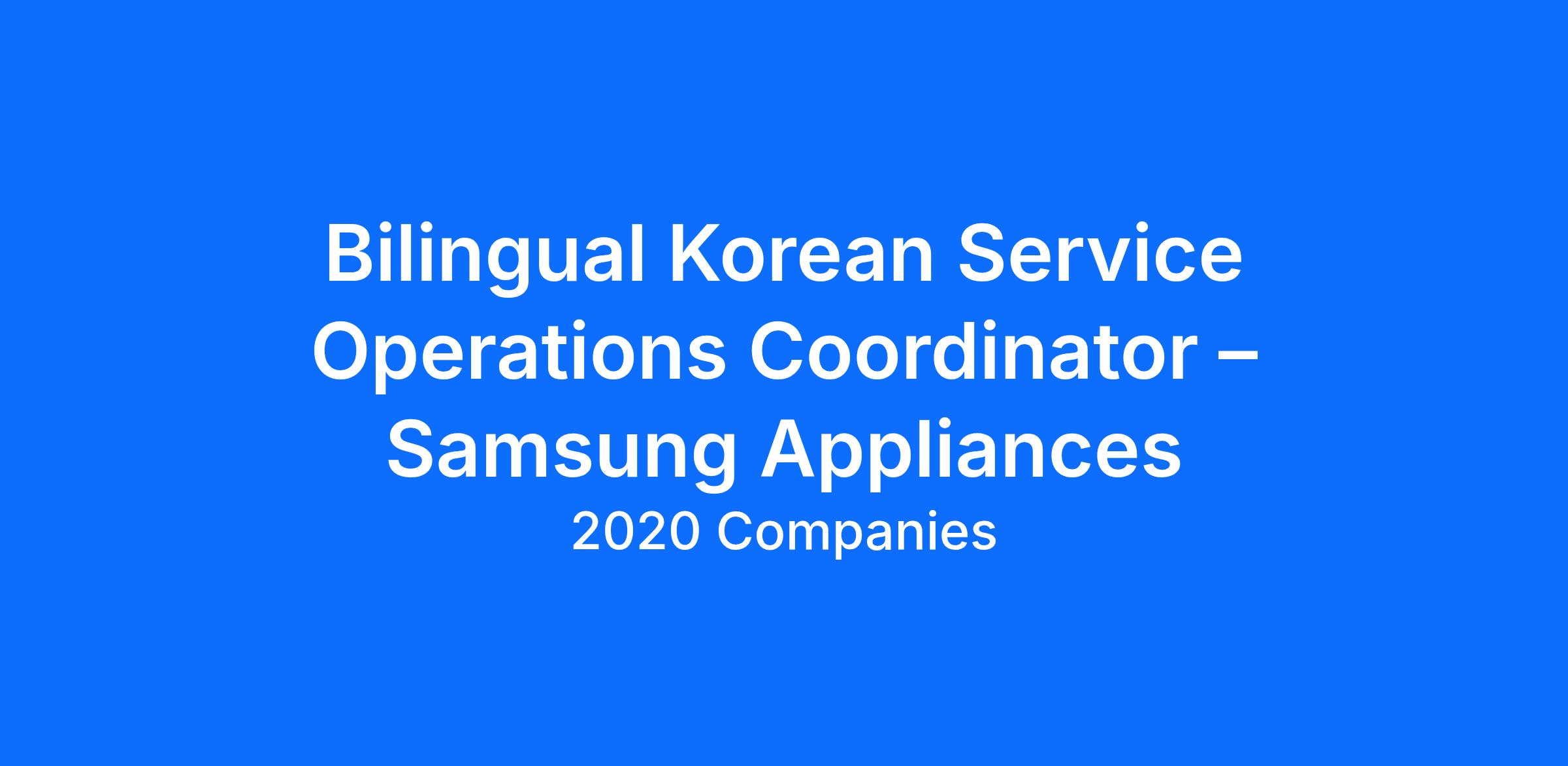 2020 Companies, in partnership with Samsung Electronics America, seeks a recent graduate or entry-level Bilingual Korean Service Operations Coordinator to join the team. This role is ideal for someone eager to learn and grow in the appliance break/fix industry. The candidate will receive hands-on training and mentorship while supporting the management of technical support tickets within Contact Center operations.