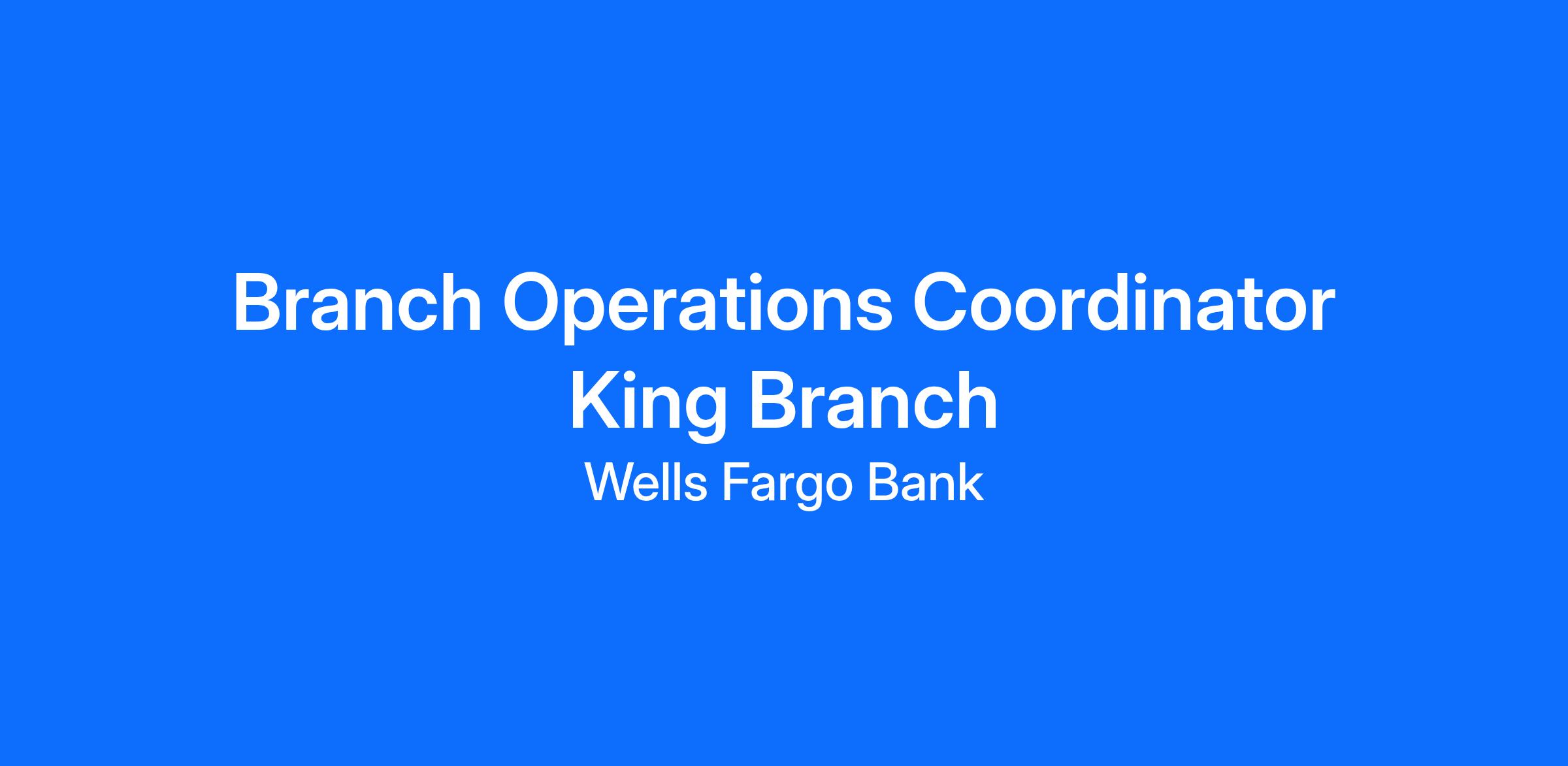 Wells Fargo is seeking a Branch Operations Coordinator for our National Branch Network as part of the Consumer, Small & Business Banking division. Learn more about the career areas and business divisions at wellsfargojobs.com.
