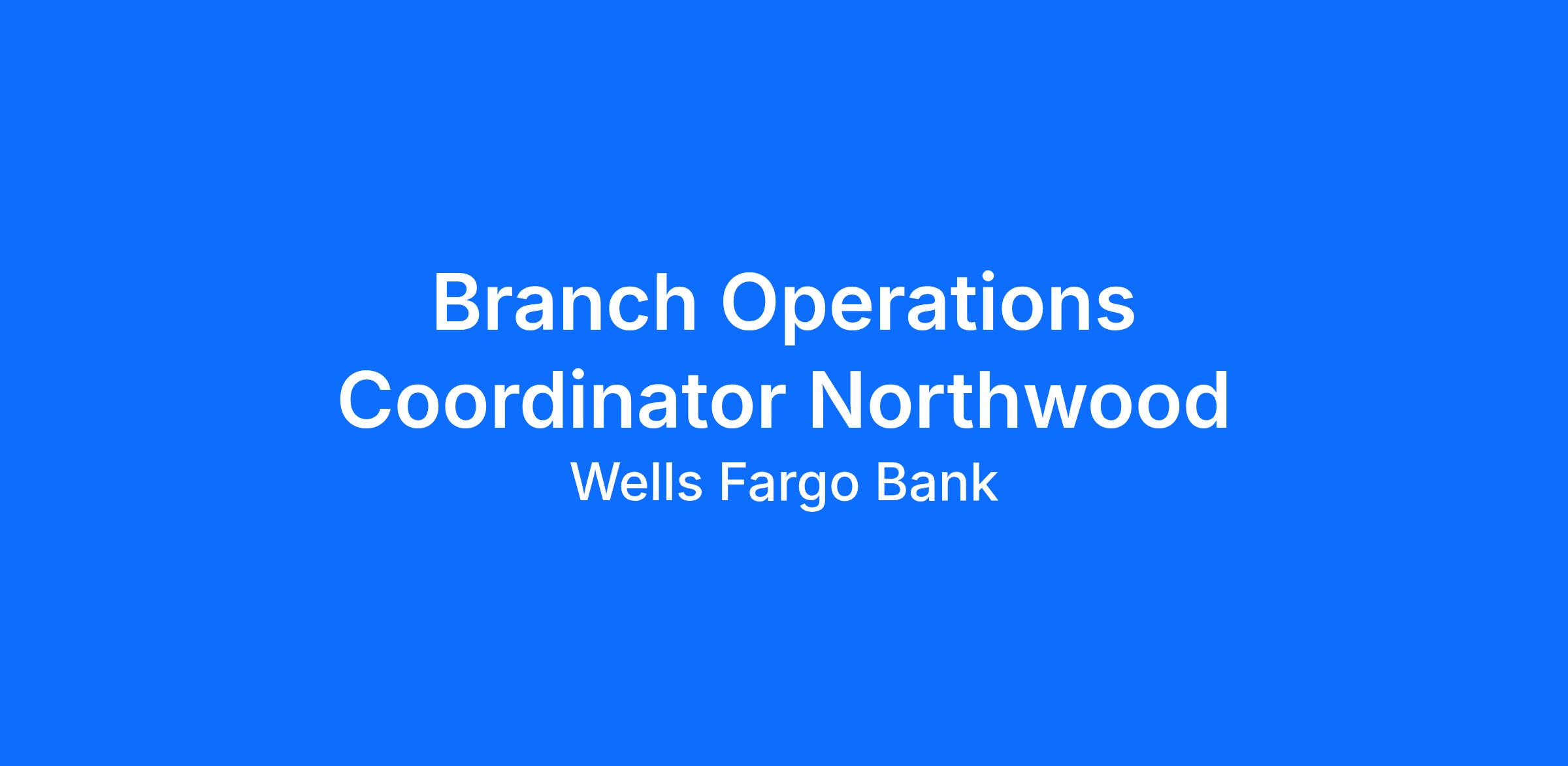 Wells Fargo is seeking a Branch Operations Coordinator for our National Branch Network as part of the Consumer, Small & Business Banking division. Learn more about the career areas and business divisions at wellsfargojobs.com.