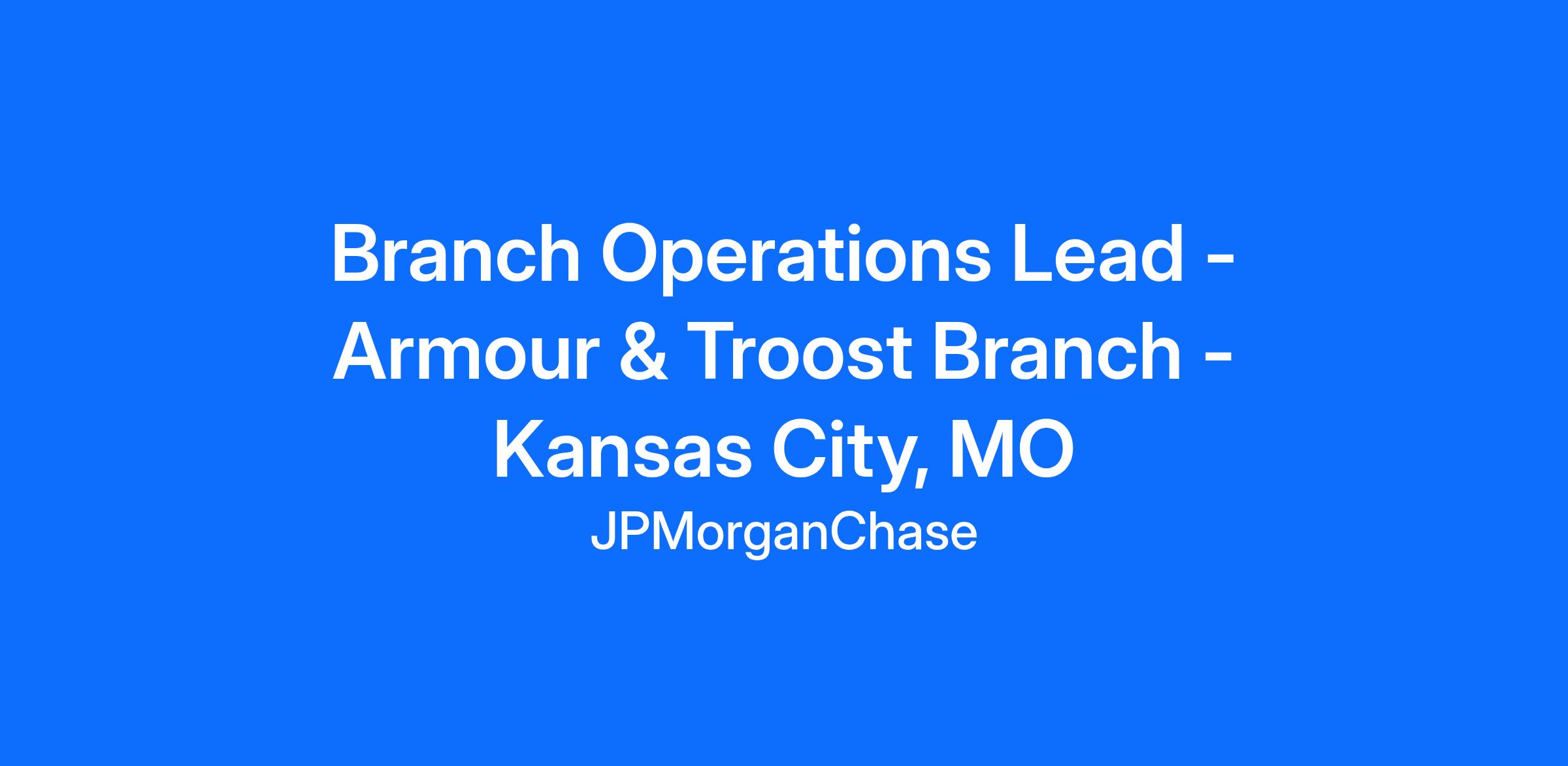 Branch Operations Lead - Armour & Troost Branch - Kansas City, MO