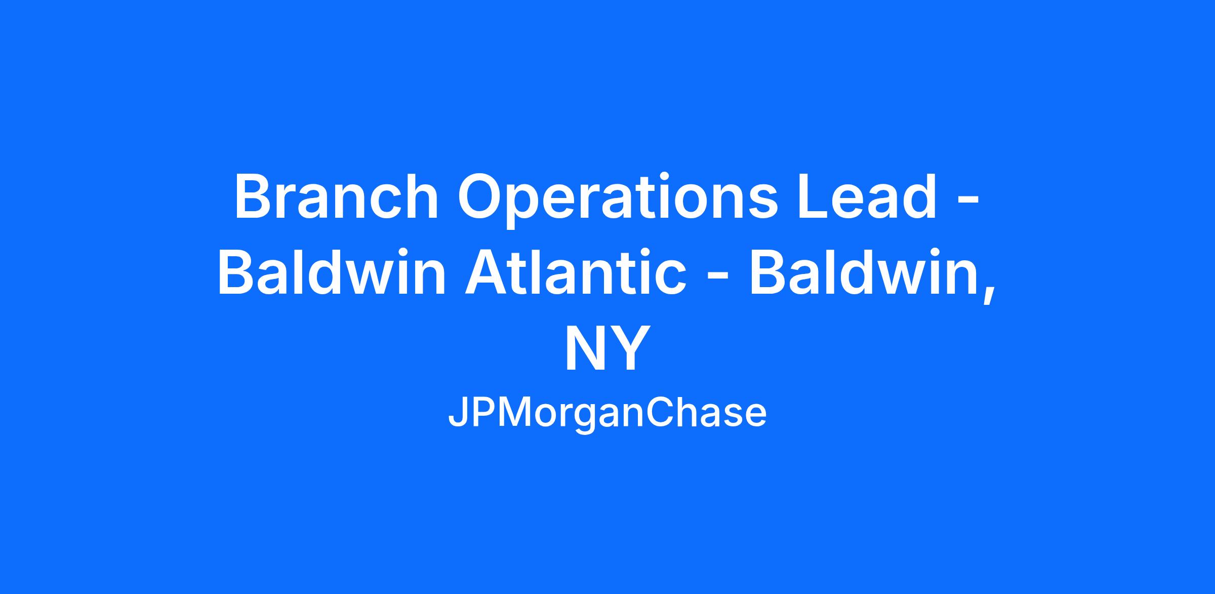 Branch Operations Lead - Baldwin Atlantic - Baldwin, NY