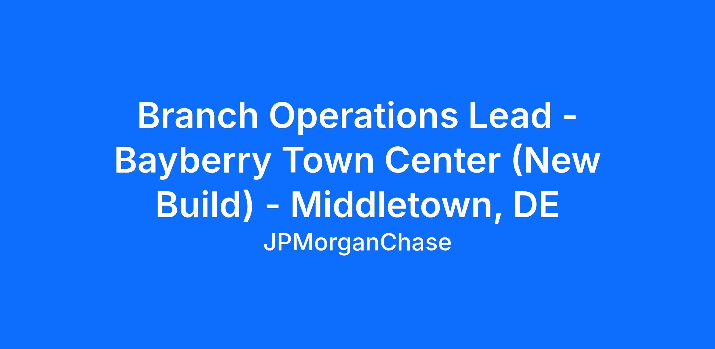 Branch Operations Lead - Bayberry Town Center (New Build) - Middletown, DE