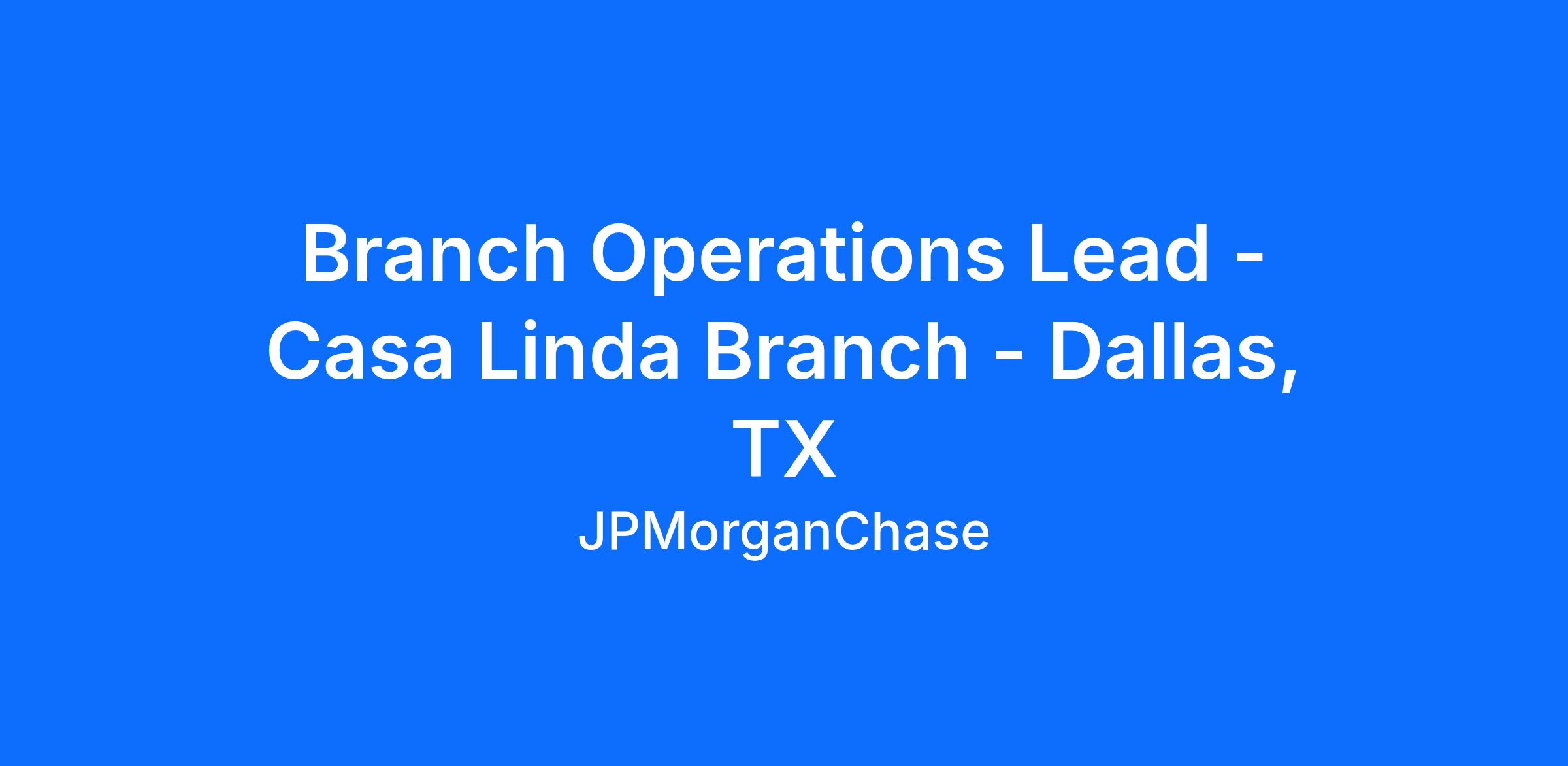 Branch Operations Lead - Casa Linda Branch - Dallas, TX