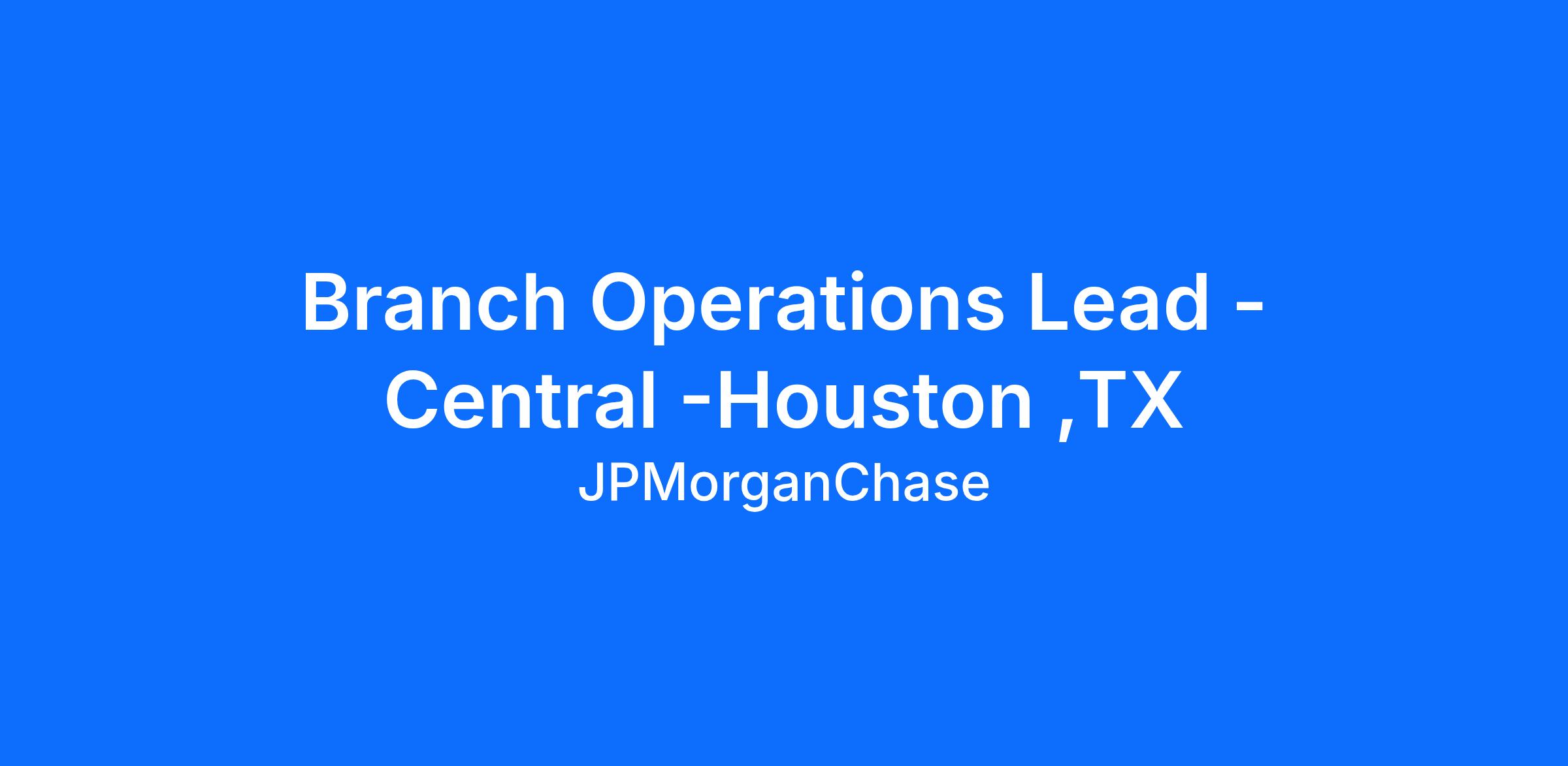 Branch Operations Lead -Central -Houston ,TX
