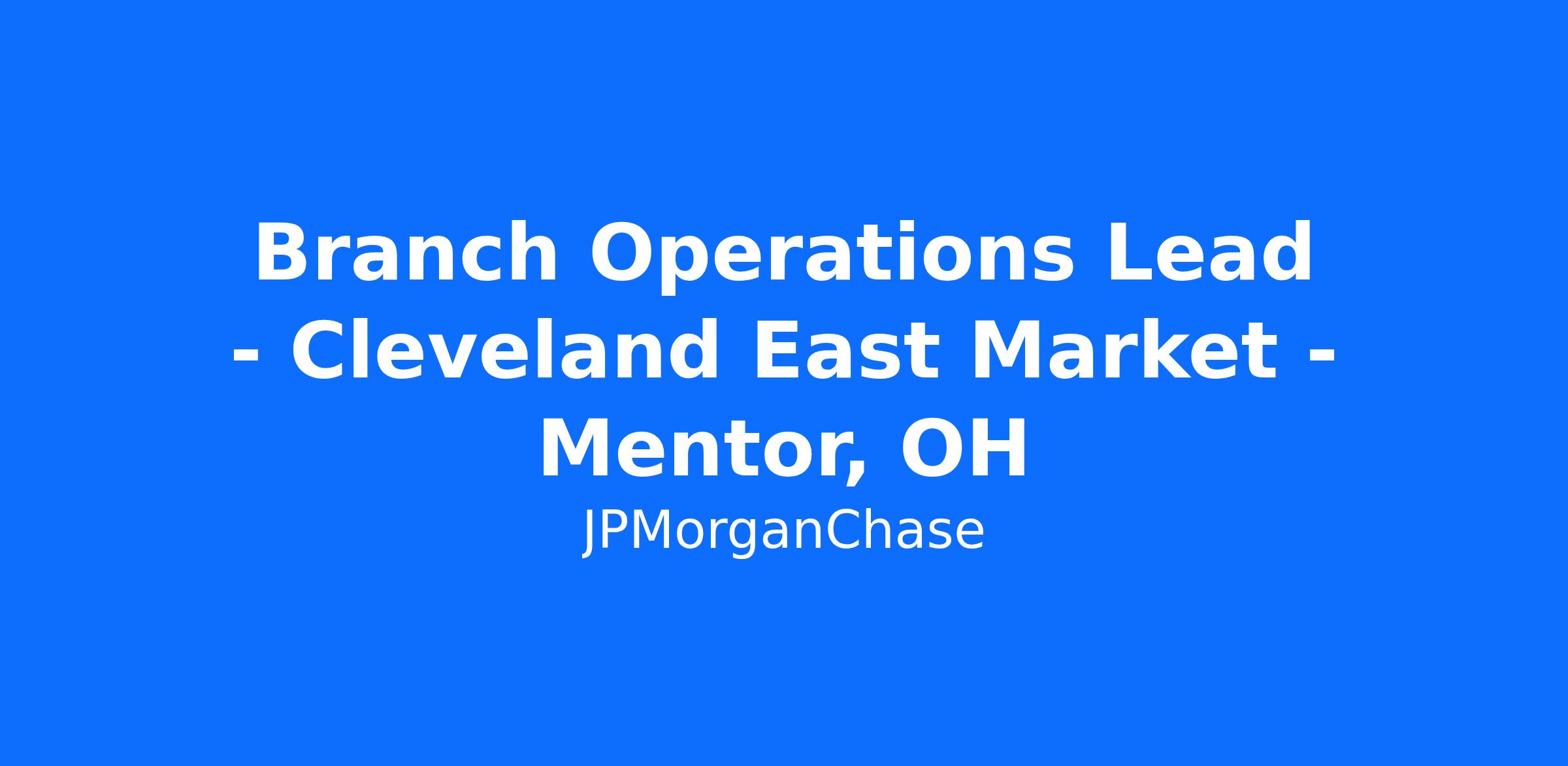 Branch Operations Lead - Cleveland East Market - Mentor, OH