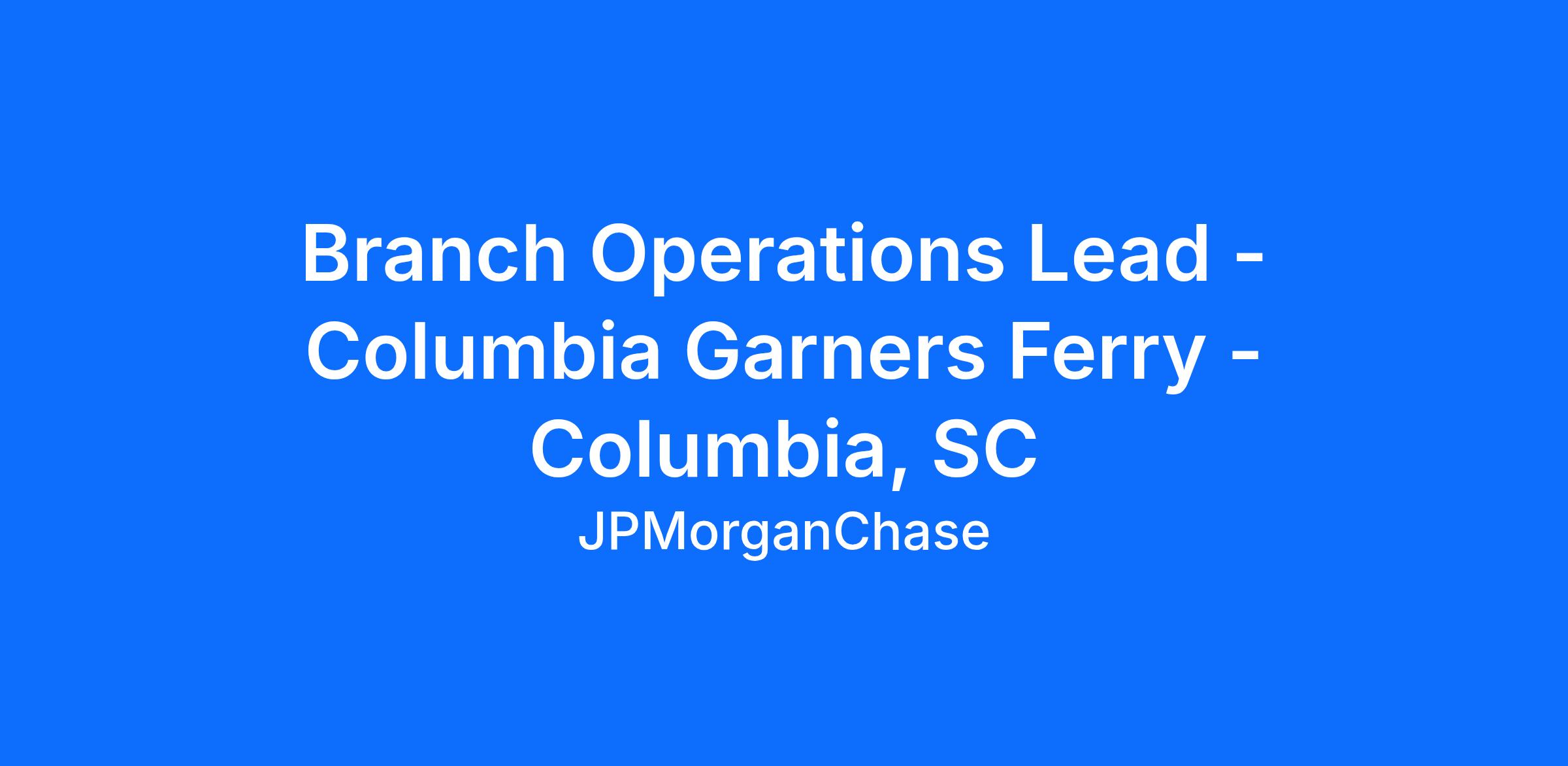 Branch Operations Lead - Columbia Garners Ferry - Columbia, SC