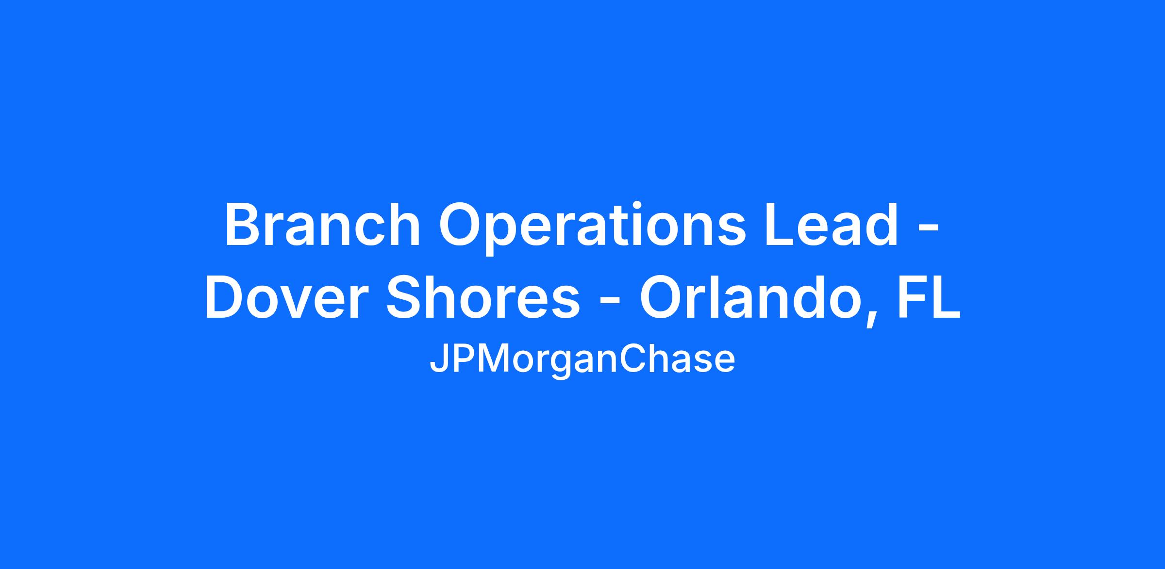 Branch Operations Lead - Dover Shores - Orlando, FL