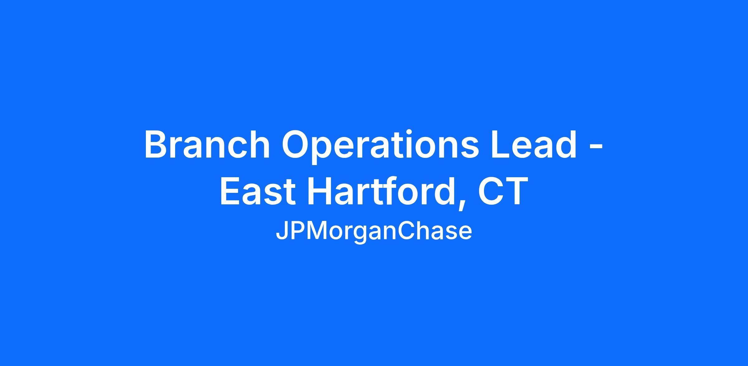 Branch Operations Lead - East Hartford, CT