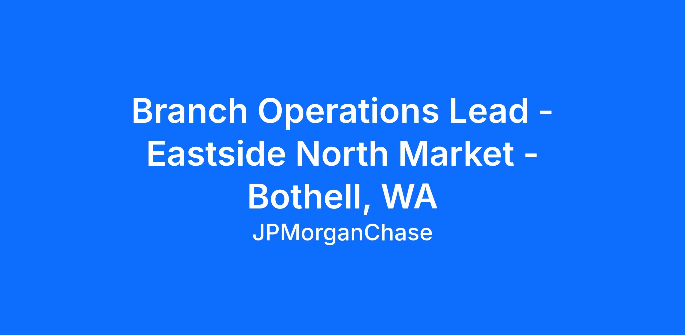 Branch Operations Lead - Eastside North Market - Bothell, WA