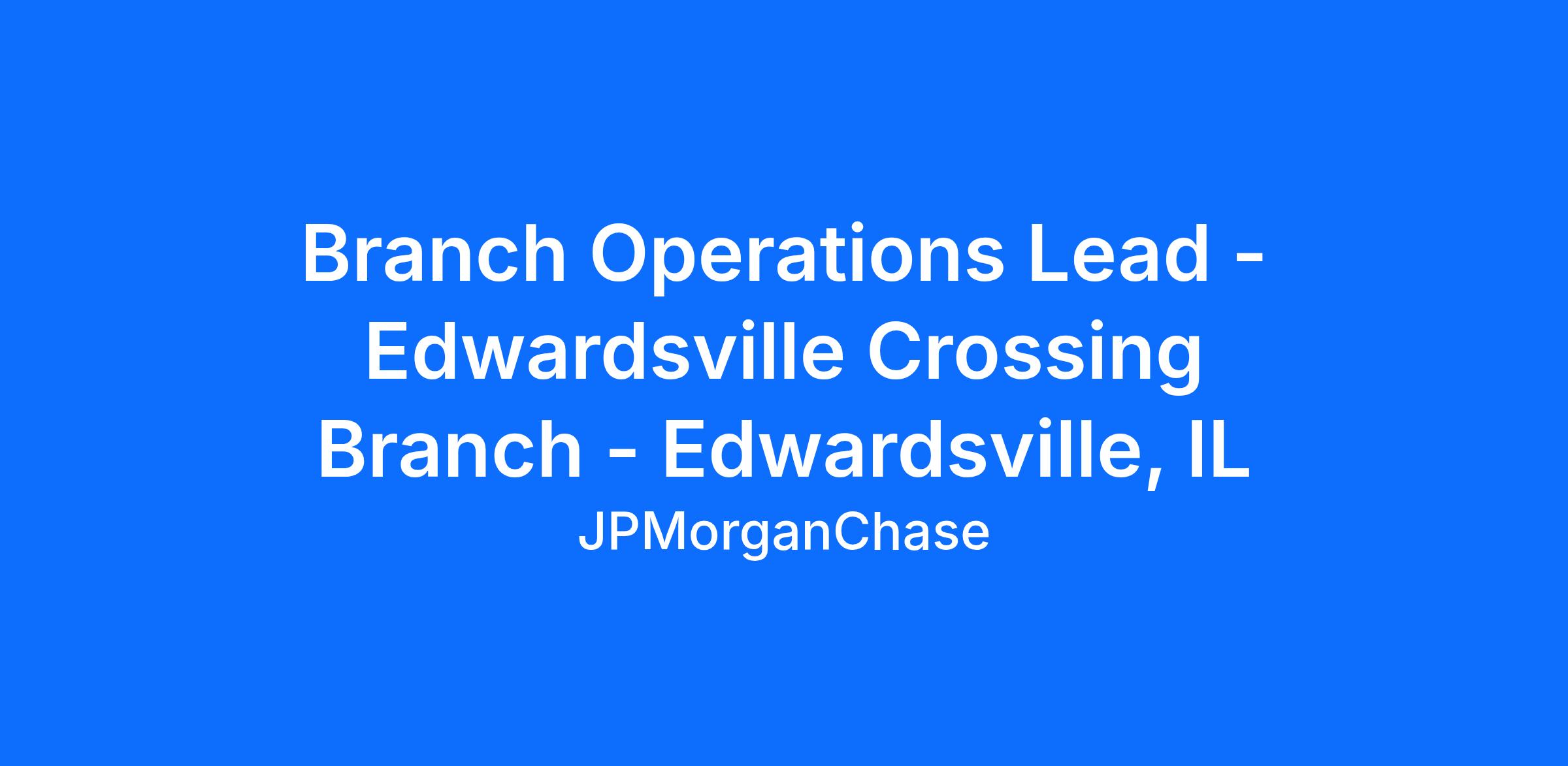Branch Operations Lead - Edwardsville Crossing Branch - Edwardsville, IL