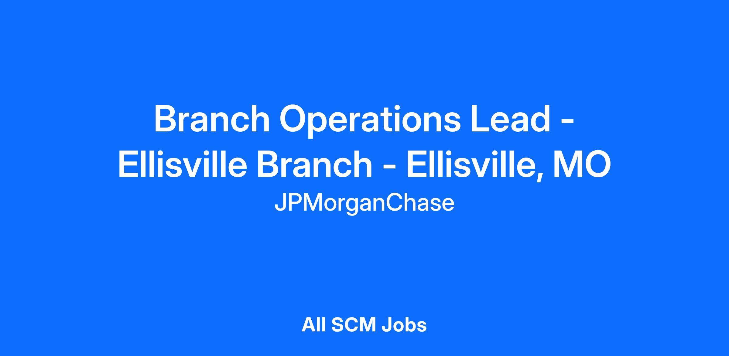 Branch Operations Lead - Ellisville Branch - Ellisville, MO