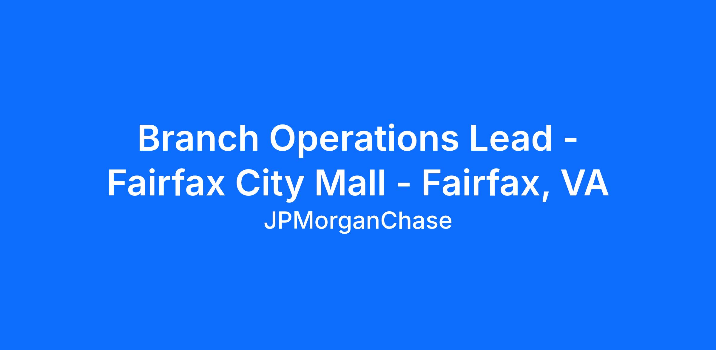 Branch Operations Lead - Fairfax City Mall - Fairfax, VA