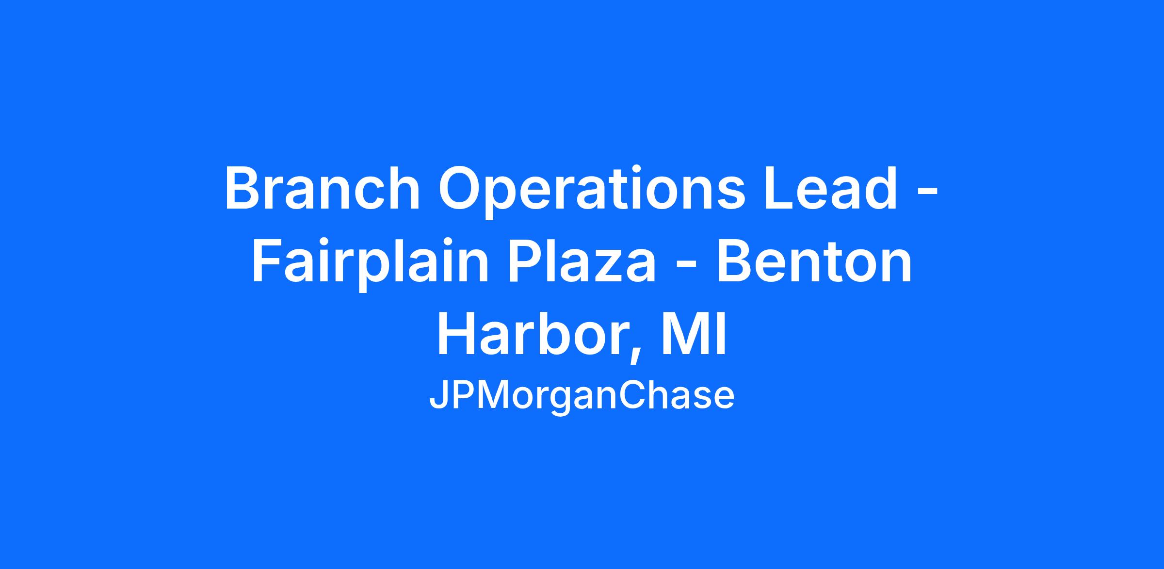 Branch Operations Lead - Fairplain Plaza - Benton Harbor, MI