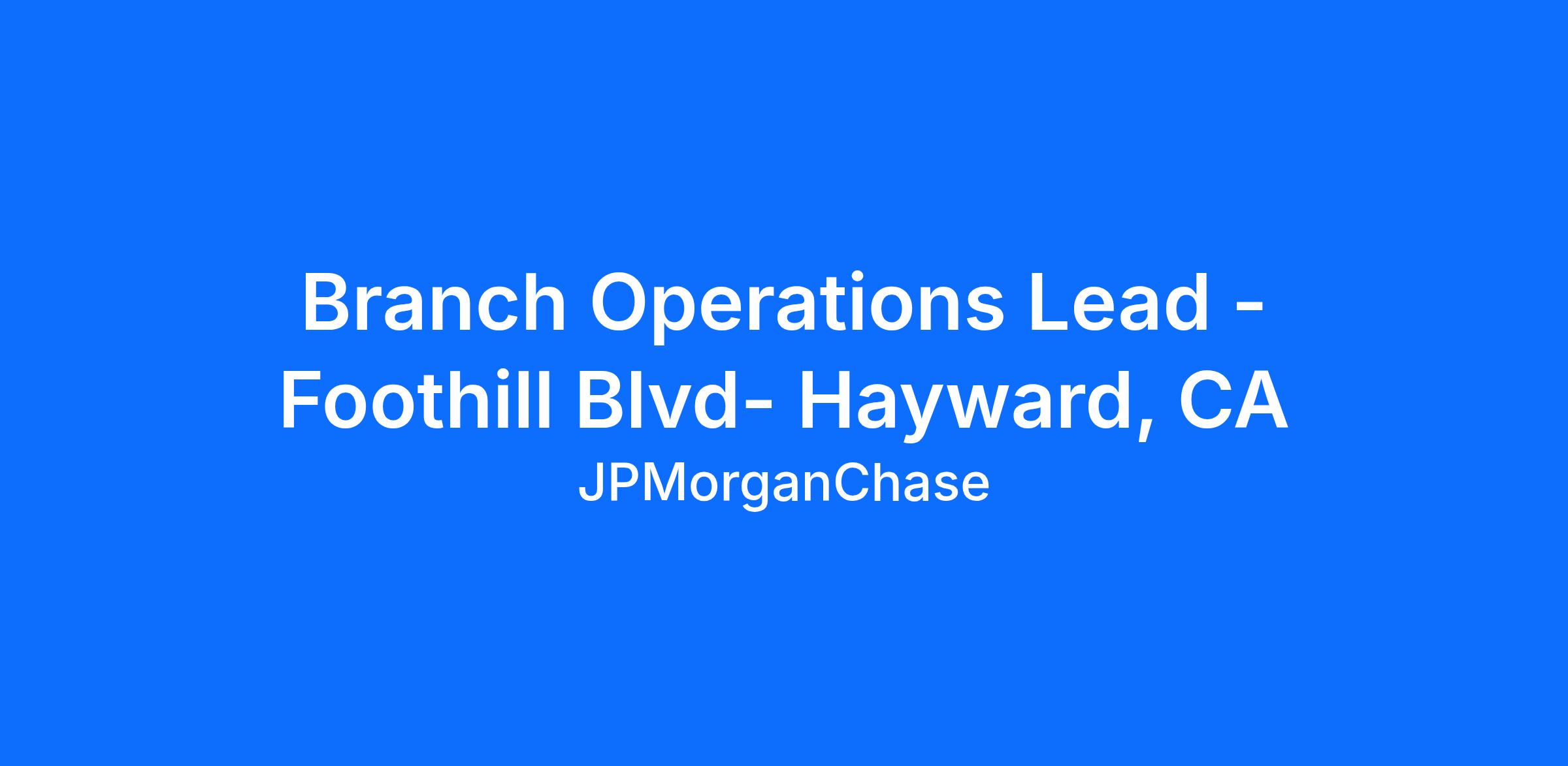 Branch Operations Lead - Foothill Blvd- Hayward, CA