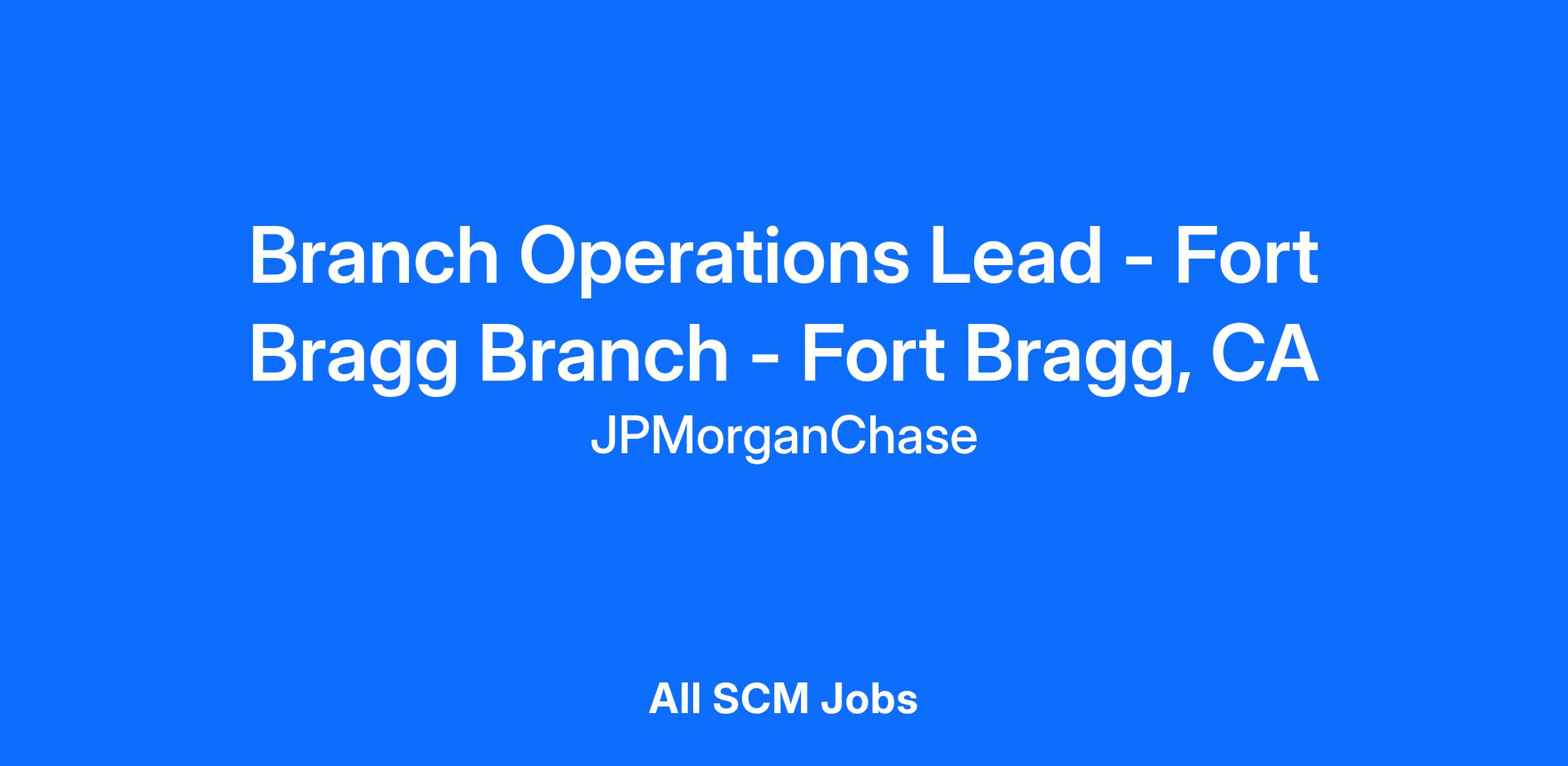 Branch Operations Lead - Fort Bragg Branch - Fort Bragg, CA