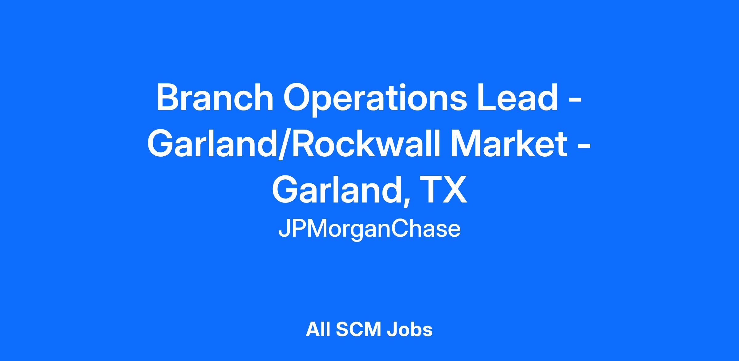 Branch Operations Lead - Garland/Rockwall Market - Garland, TX