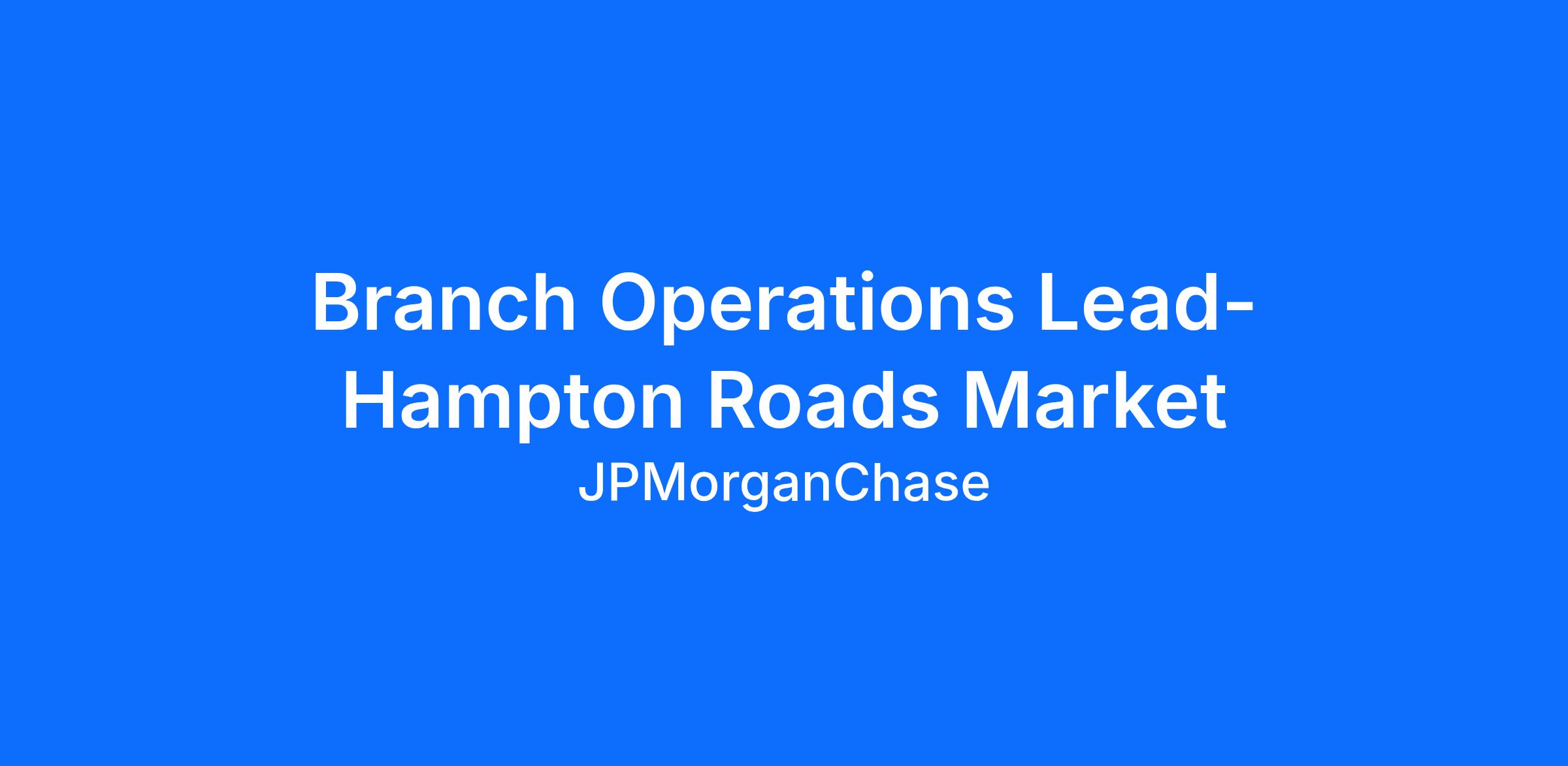 Branch Operations Lead- Hampton Roads Market