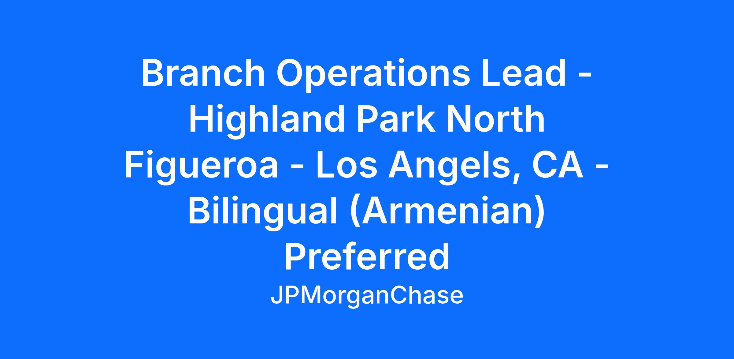 Branch Operations Lead - Highland Park North Figueroa - Los Angels, CA - Bilingual (Armenian) Preferred