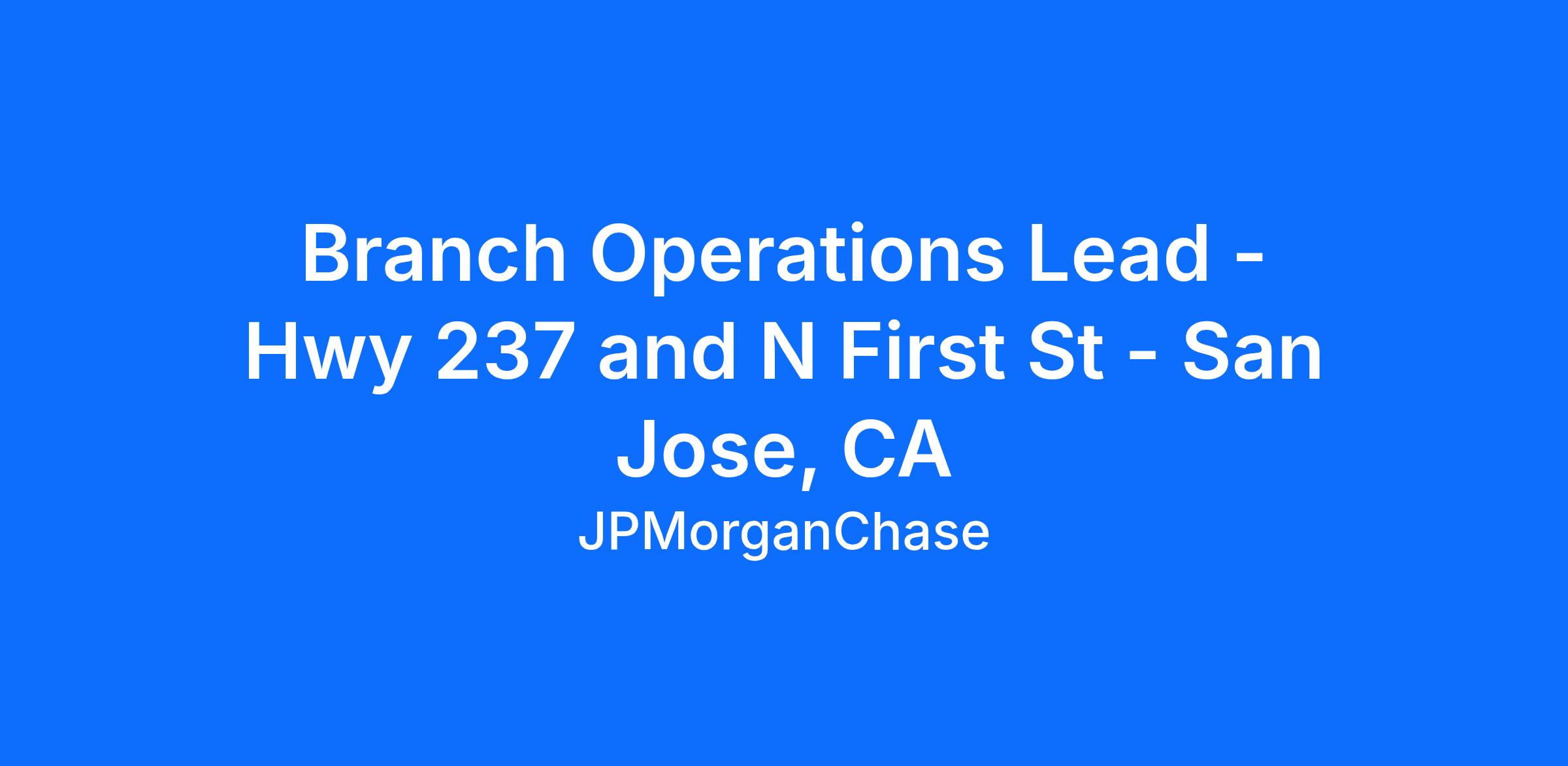 Branch Operations Lead - Hwy 237 and N First St - San Jose, CA