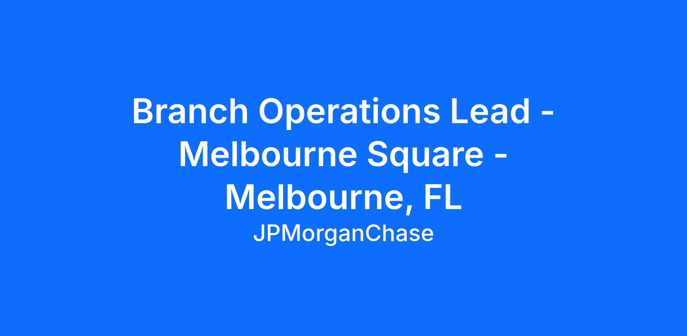 Branch Operations Lead - Melbourne Square - Melbourne, FL