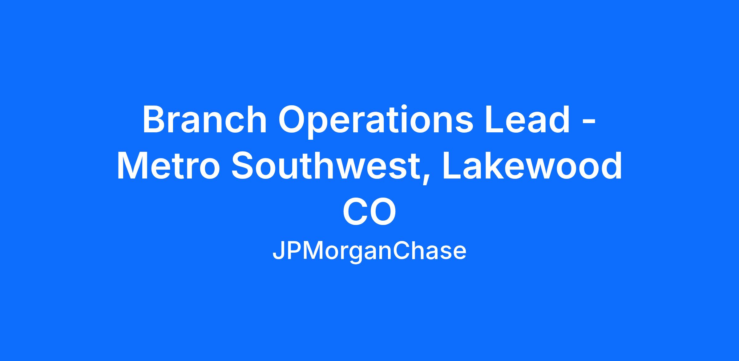 Branch Operations Lead - Metro Southwest, Lakewood CO