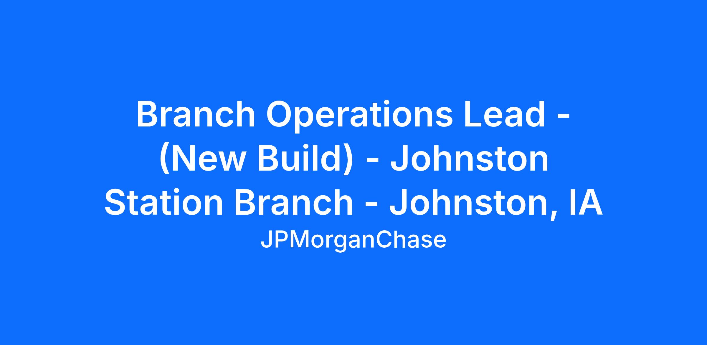 Branch Operations Lead - (New Build) - Johnston Station Branch - Johnston, IA