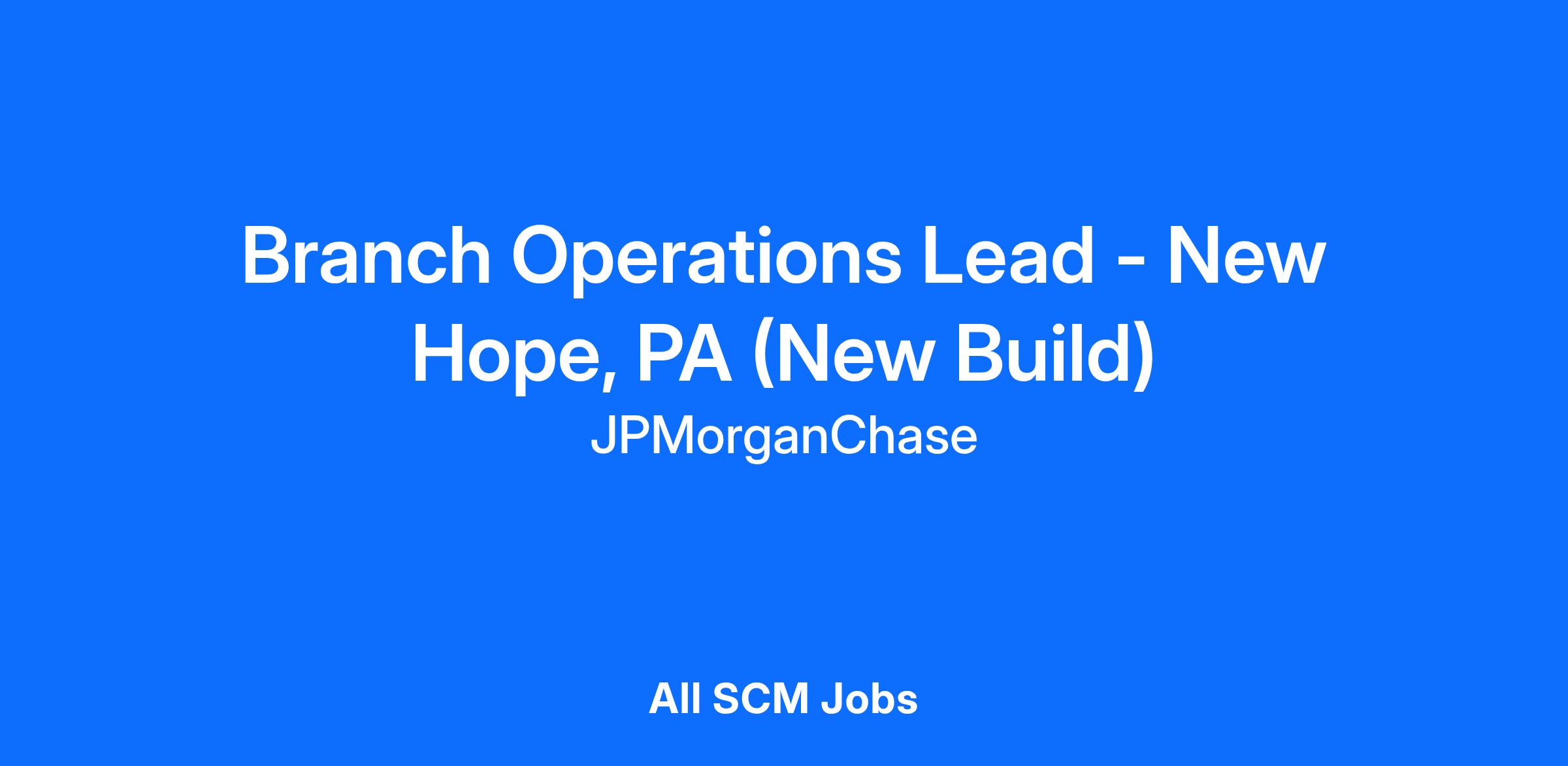 Branch Operations Lead - New Hope, PA (New Build)