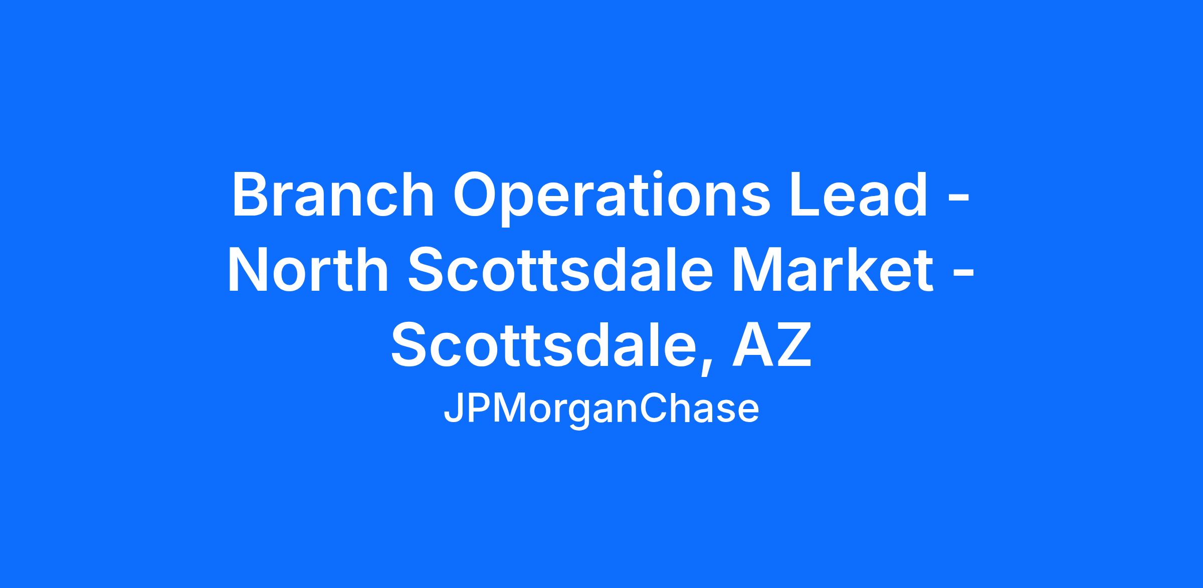 Branch Operations Lead - North Scottsdale Market - Scottsdale, AZ