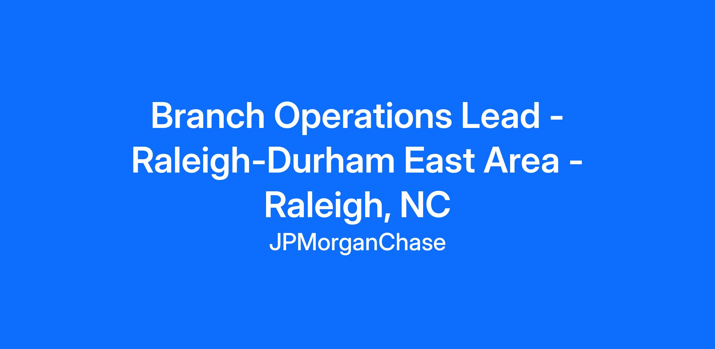 Branch Operations Lead - Raleigh-Durham East Area - Raleigh, NC