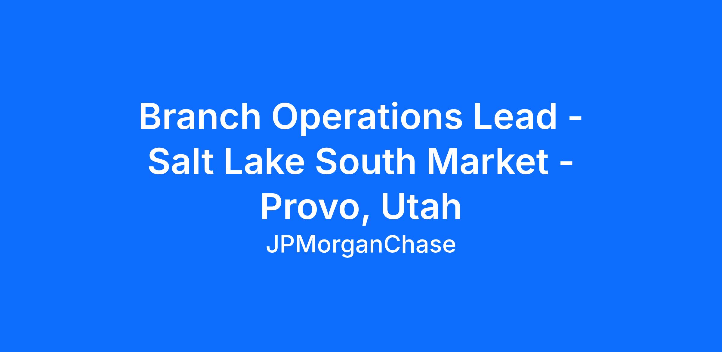 Branch Operations Lead - Salt Lake South Market - Provo, Utah