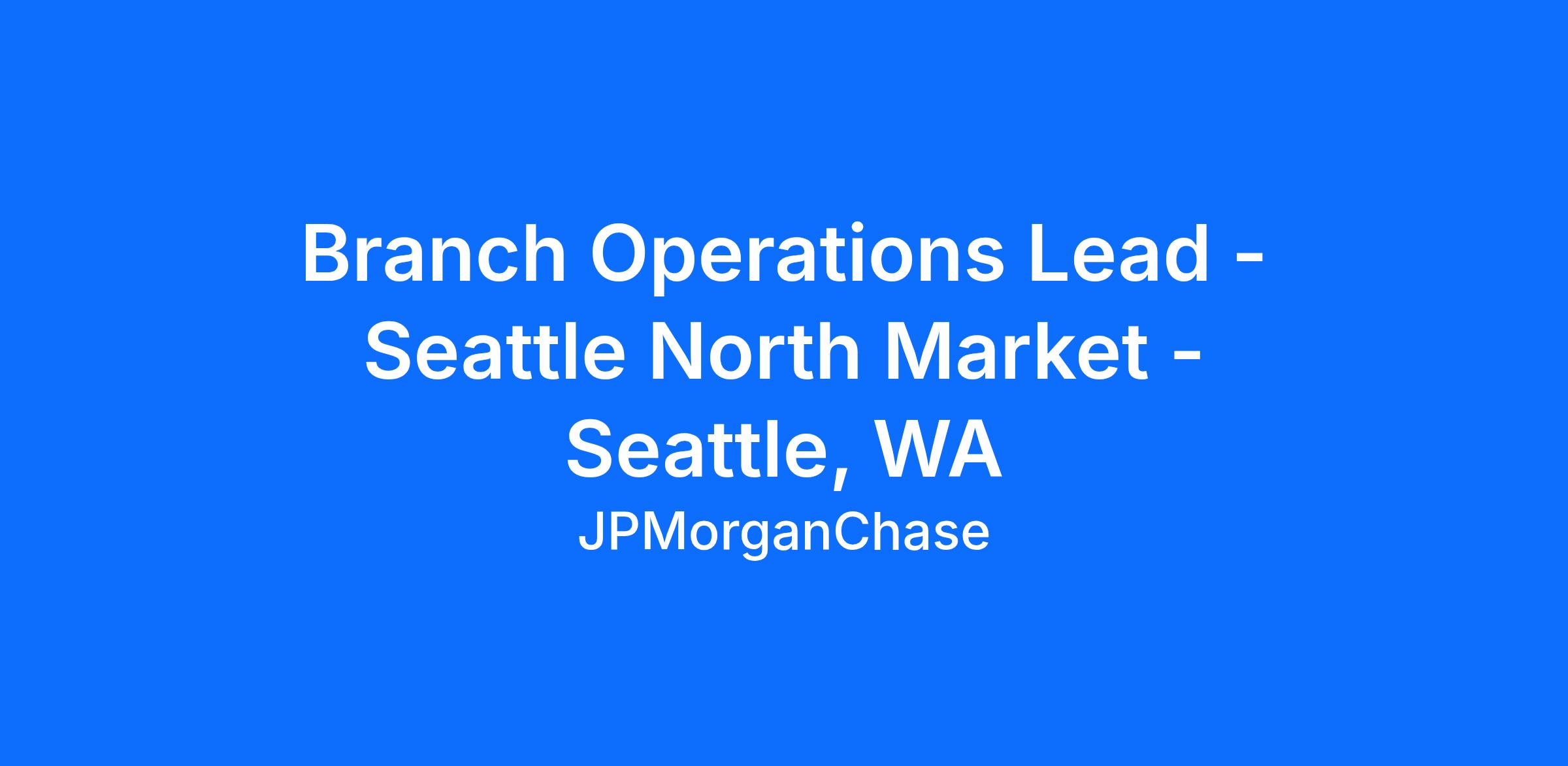 Branch Operations Lead - Seattle North Market - Seattle, WA