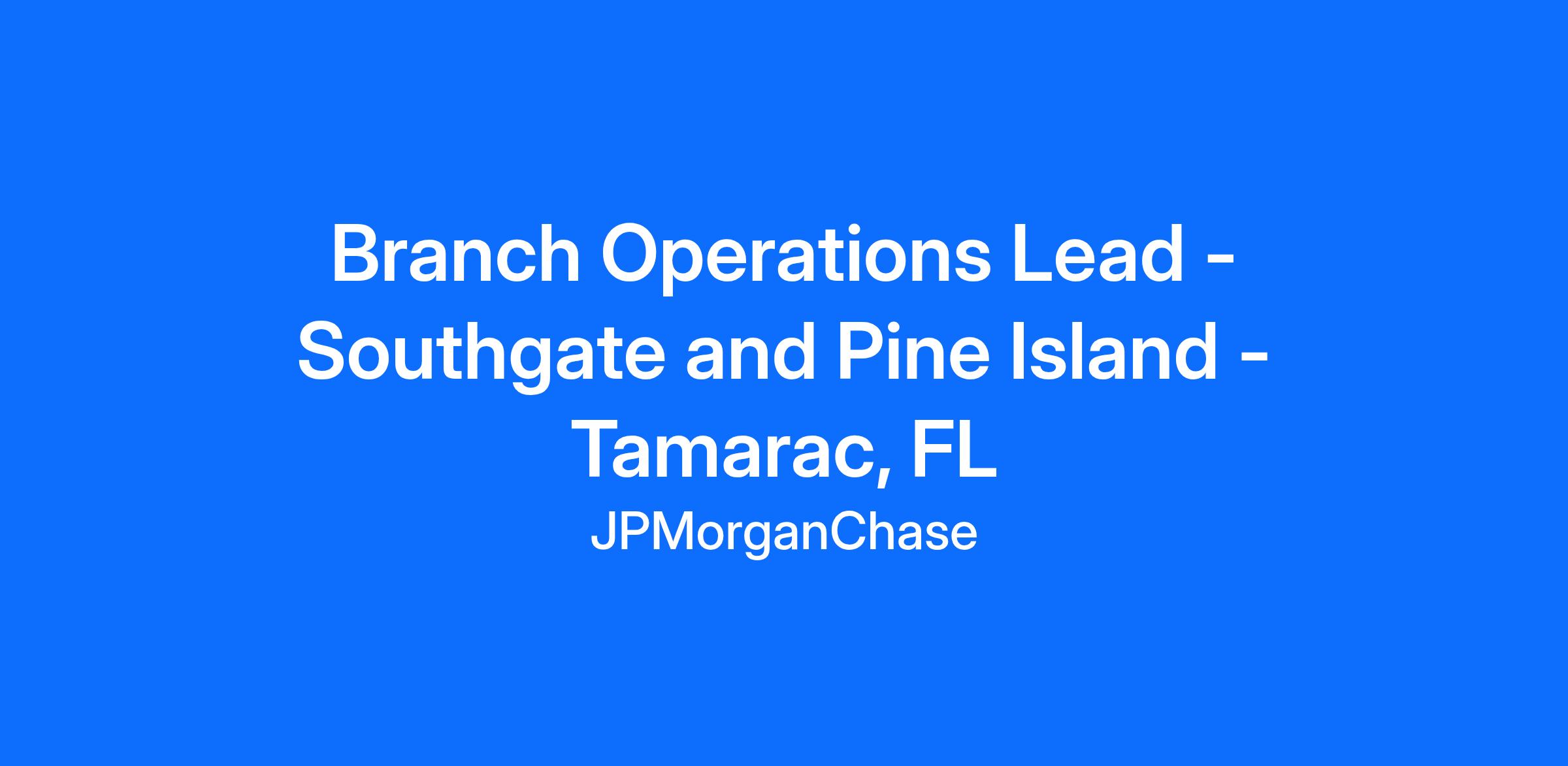 Branch Operations Lead - Southgate and Pine Island - Tamarac, FL