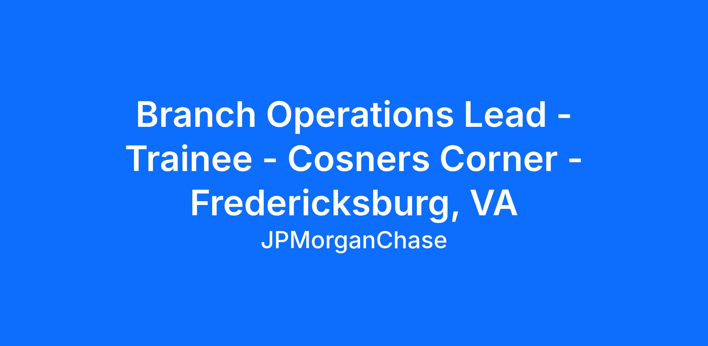 Branch Operations Lead -Trainee - Cosners Corner - Fredericksburg, VA