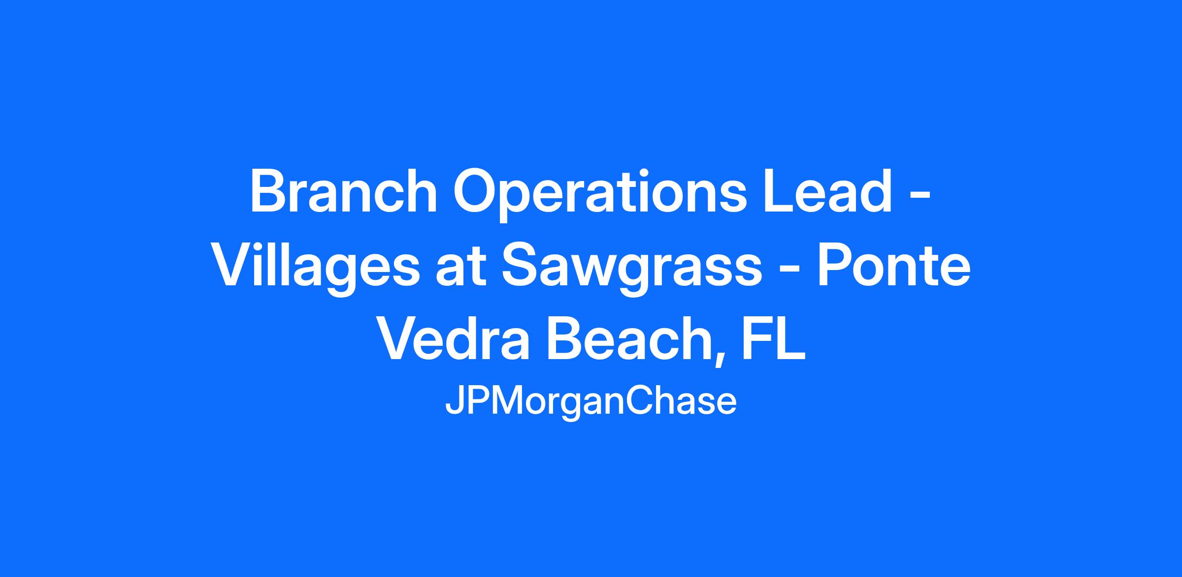 Branch Operations Lead - Villages at Sawgrass - Ponte Vedra Beach, FL