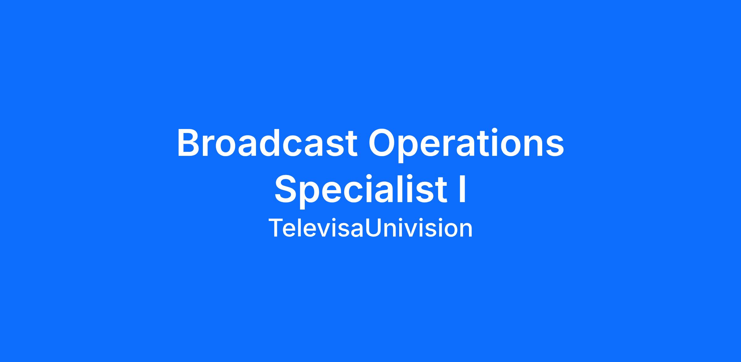 Content Management at TelevisaUnivision is seeking a Broadcast Operations Specialist to join our team!