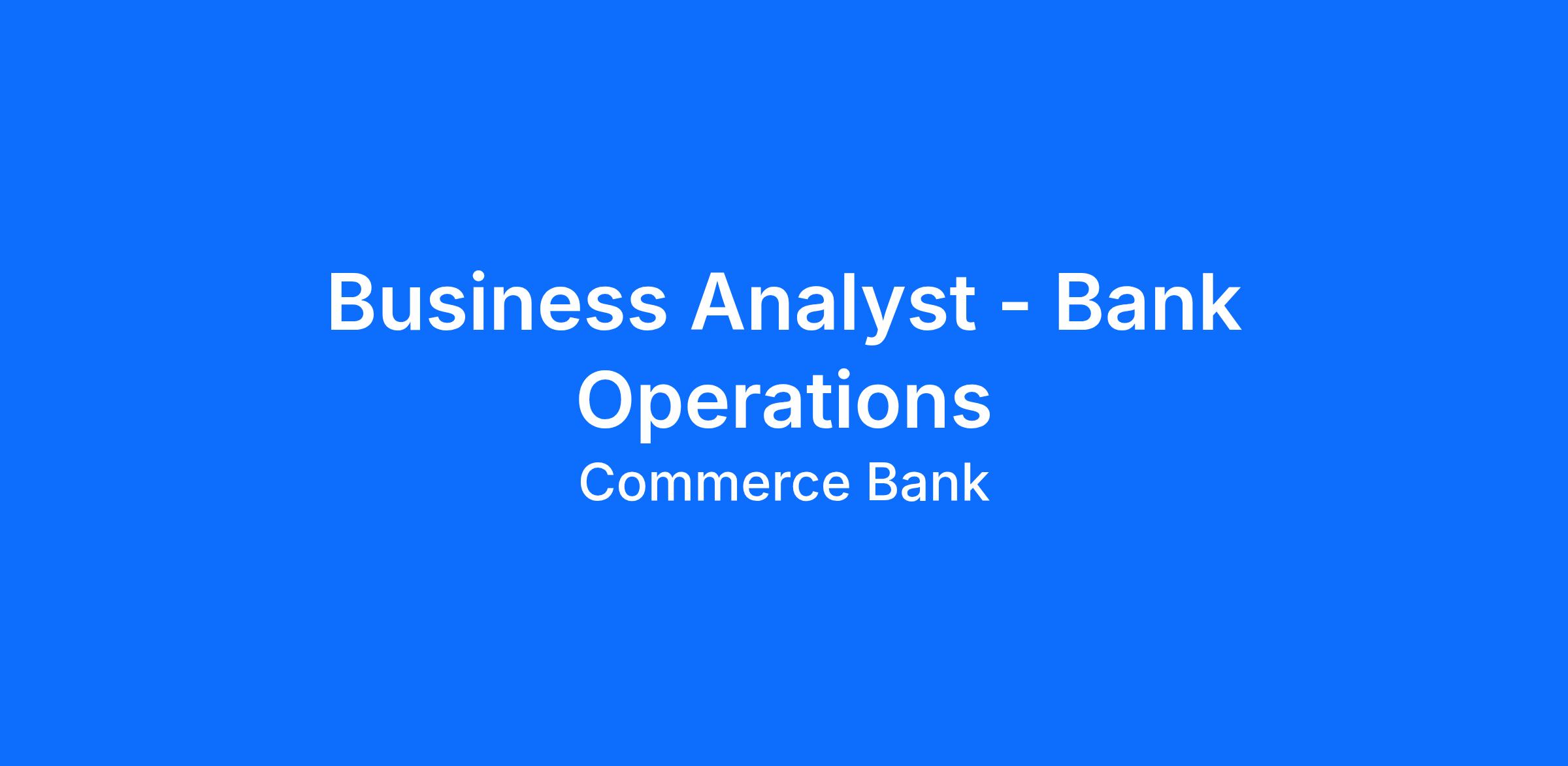 ***For individuals applying, assigned and/or hired to work in areas with pay transparency requirements, Commerce is required by law to include a reasonable estimate of the compensation range for some roles. This compensation range is for the Business Analyst II - Bank Operations or Senior Business Analyst - Bank Operations level job and contemplates a wide range of factors that are considered in determining most appropriate job level and making compensation decisions, including but not limited to location, skill sets, education, relevant experience and training, licensure and certifications, and other business and organizational needs. The disclosed range estimate has not been adjusted for any applicable differentials (geographic, bilingual, or shift) that could be associated with the position or where it is filled. At Commerce, compensation decisions are dependent on the facts and circumstances of each situation. A reasonable estimate of the current base pay is $72,500 to $96,500 annually.