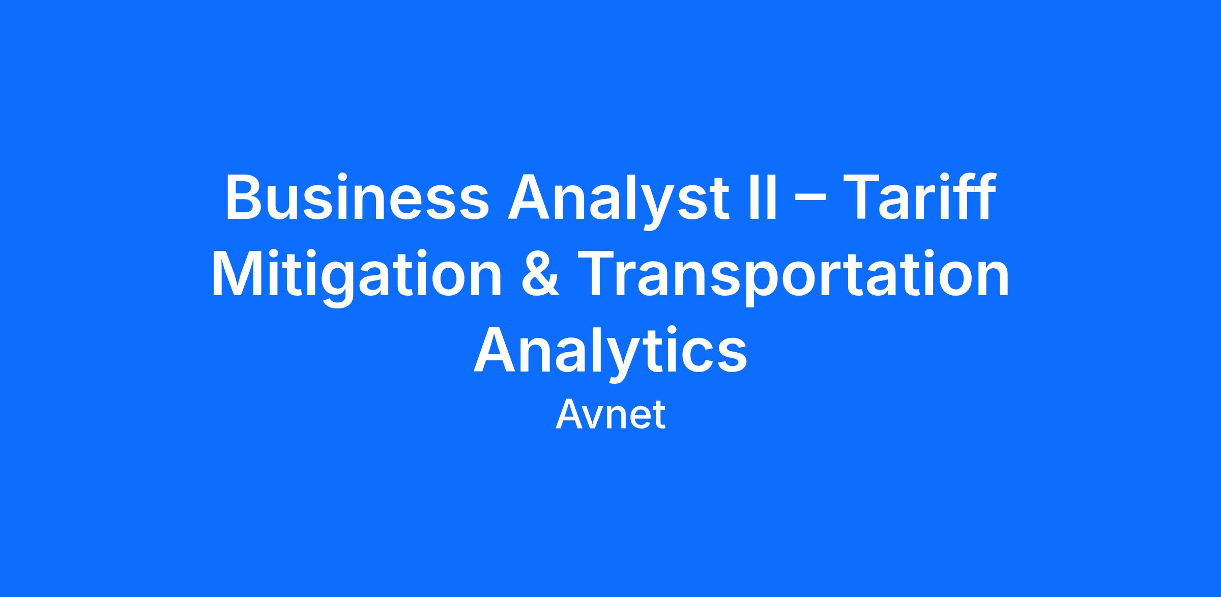 Avnet is seeking a Business Analyst II with strong analytical, financial, and problem‑solving capabilities to support key initiatives related to tariff mitigation and recovery, and freight and transportation analytics.