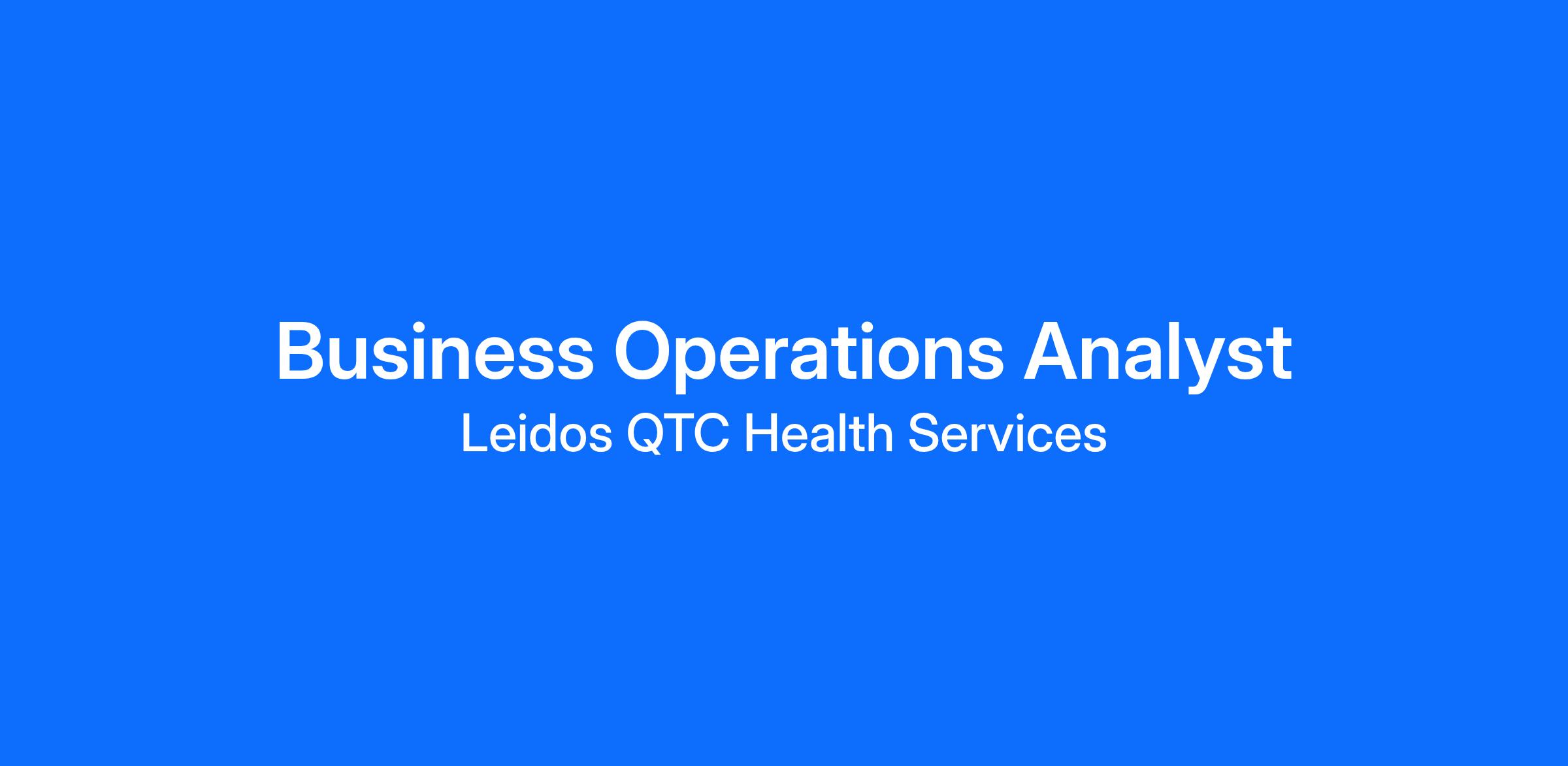 Leidos QTC Health Services is seeking a Business Operations Analyst. You will be collaborating with our business operations and technical teams supporting data analysis and reporting needs across the organization.