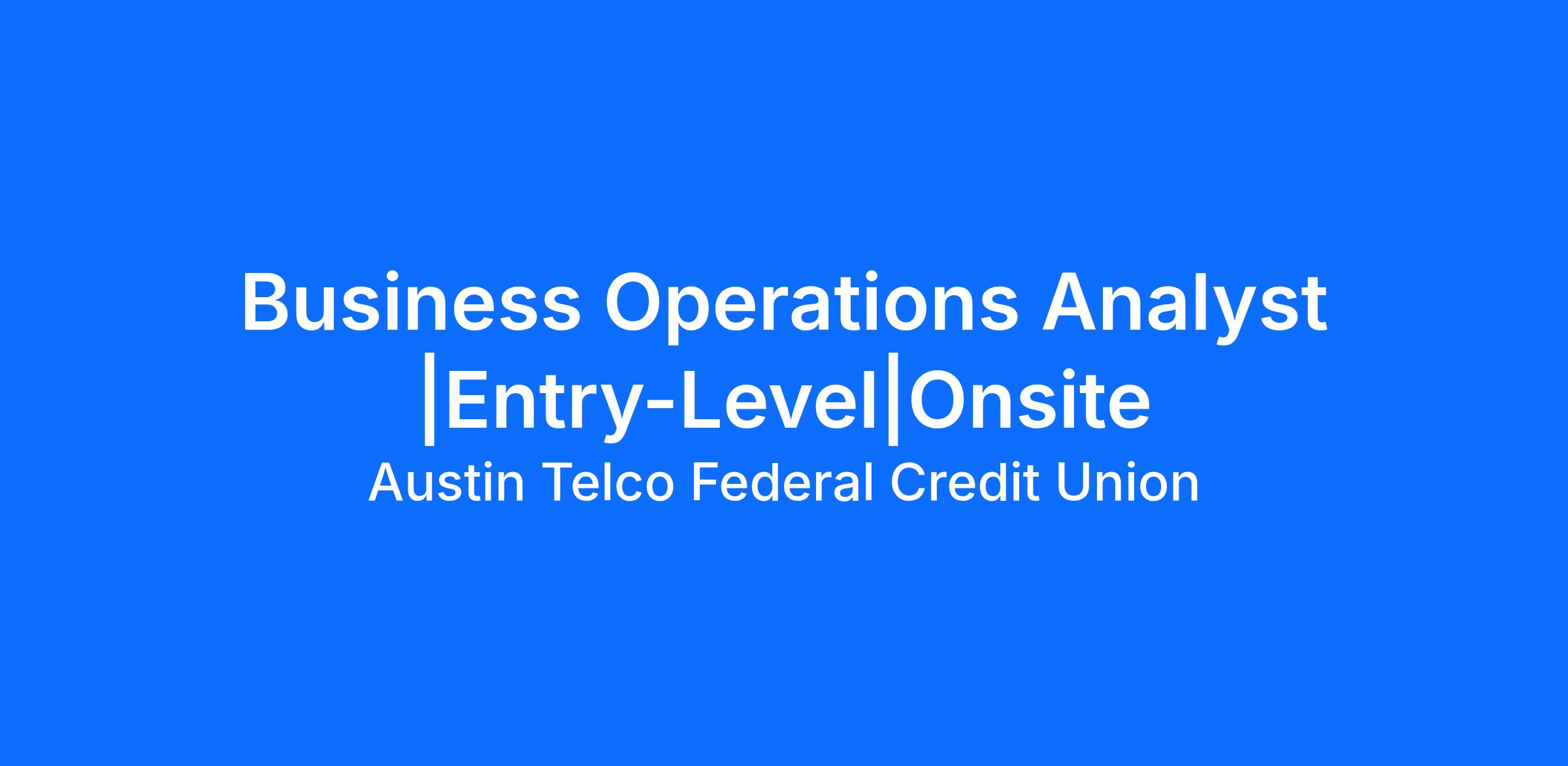 Business Operations Analyst | Location: 11149 Research Blvd, Austin, TX. | Schedule: Monday – Friday 8:00AM - 4:30PM |