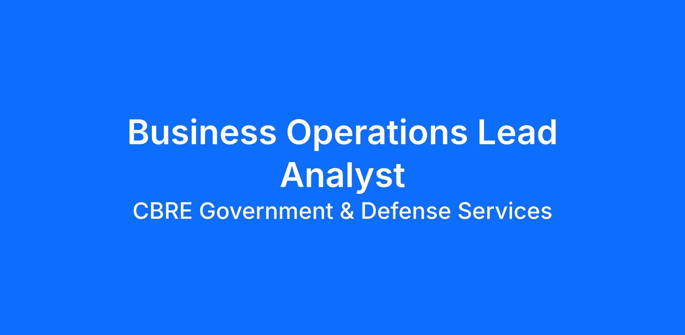 CBRE GDS is seeking a Business Operations Lead Analyst to lead BD operations, analytics and bid response support across the entire Business Development group. This role drives data-informed decision making, pipeline integrity, and rapid-response capture activities in support of federal government contracting growth objectives.