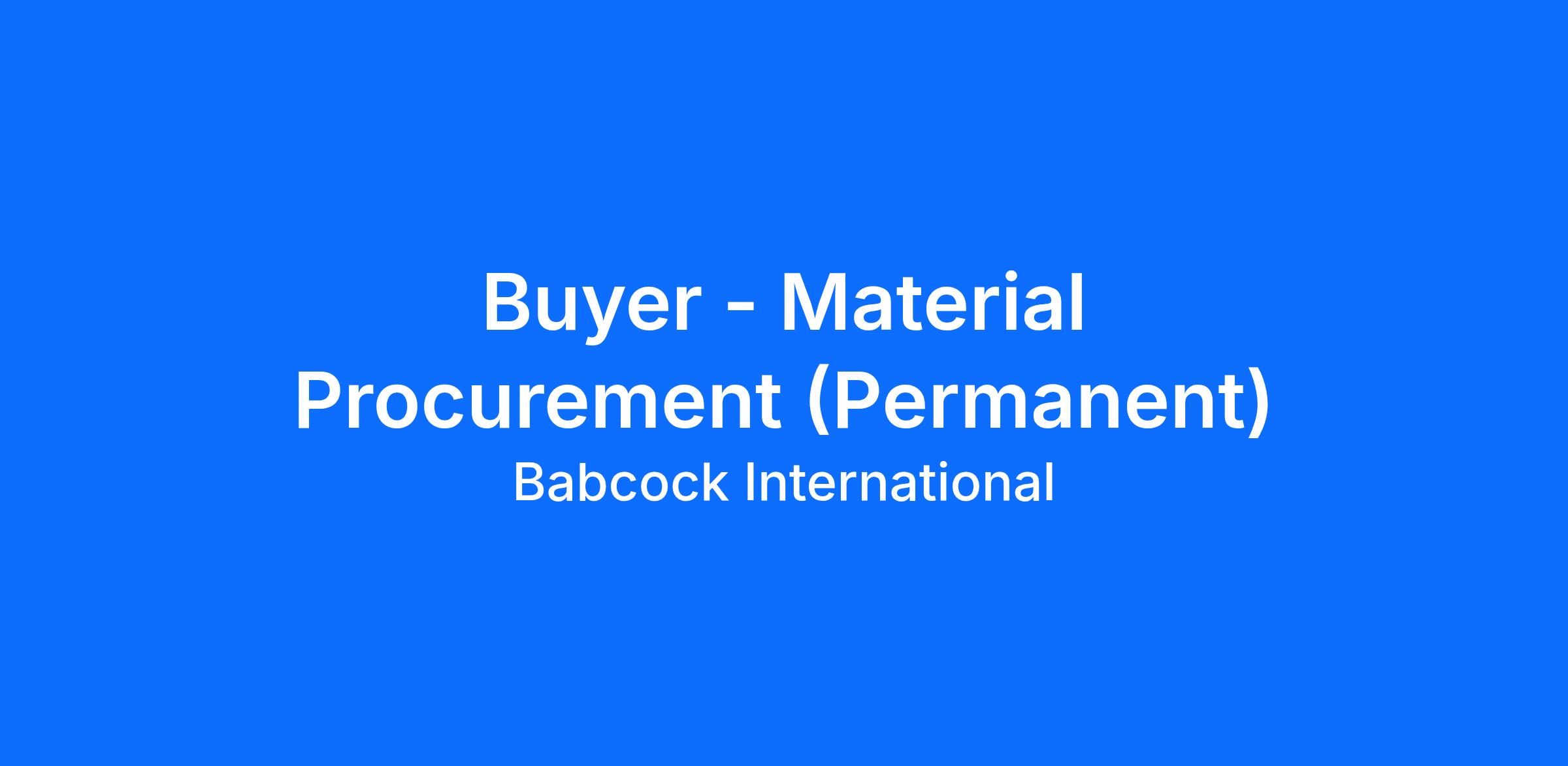 Buyer - Material Procurement (Permanent)