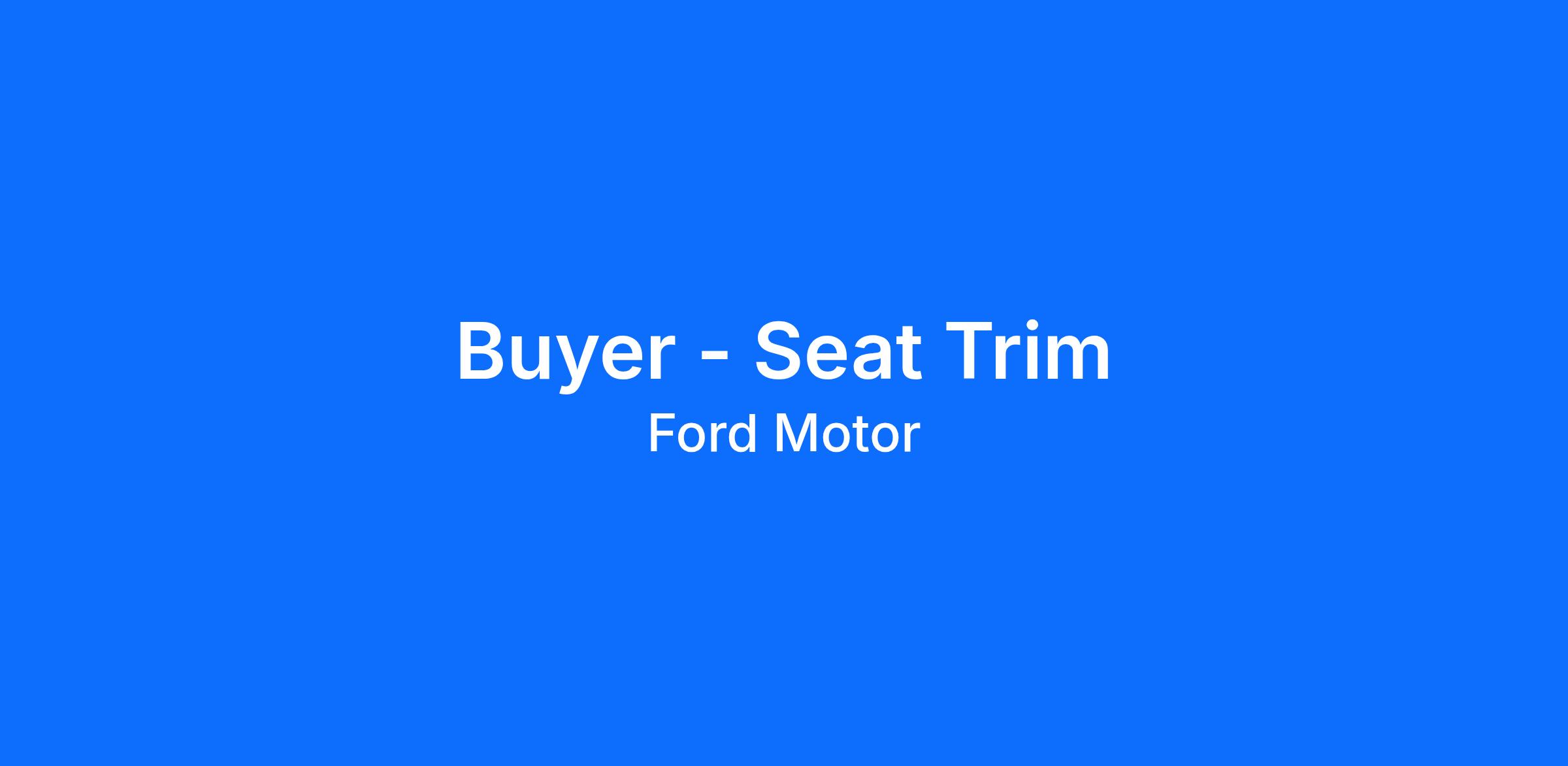 Lead Ford's sourcing strategy, commercial cost reduction actions, and supplier relationships for all Ford North America Trim cover supply. Additionally, leads integration of seat trim covers into the tier 1 seat assembler to deliver industry leading cost and quality seat assemblies' into the Ford Production plants.