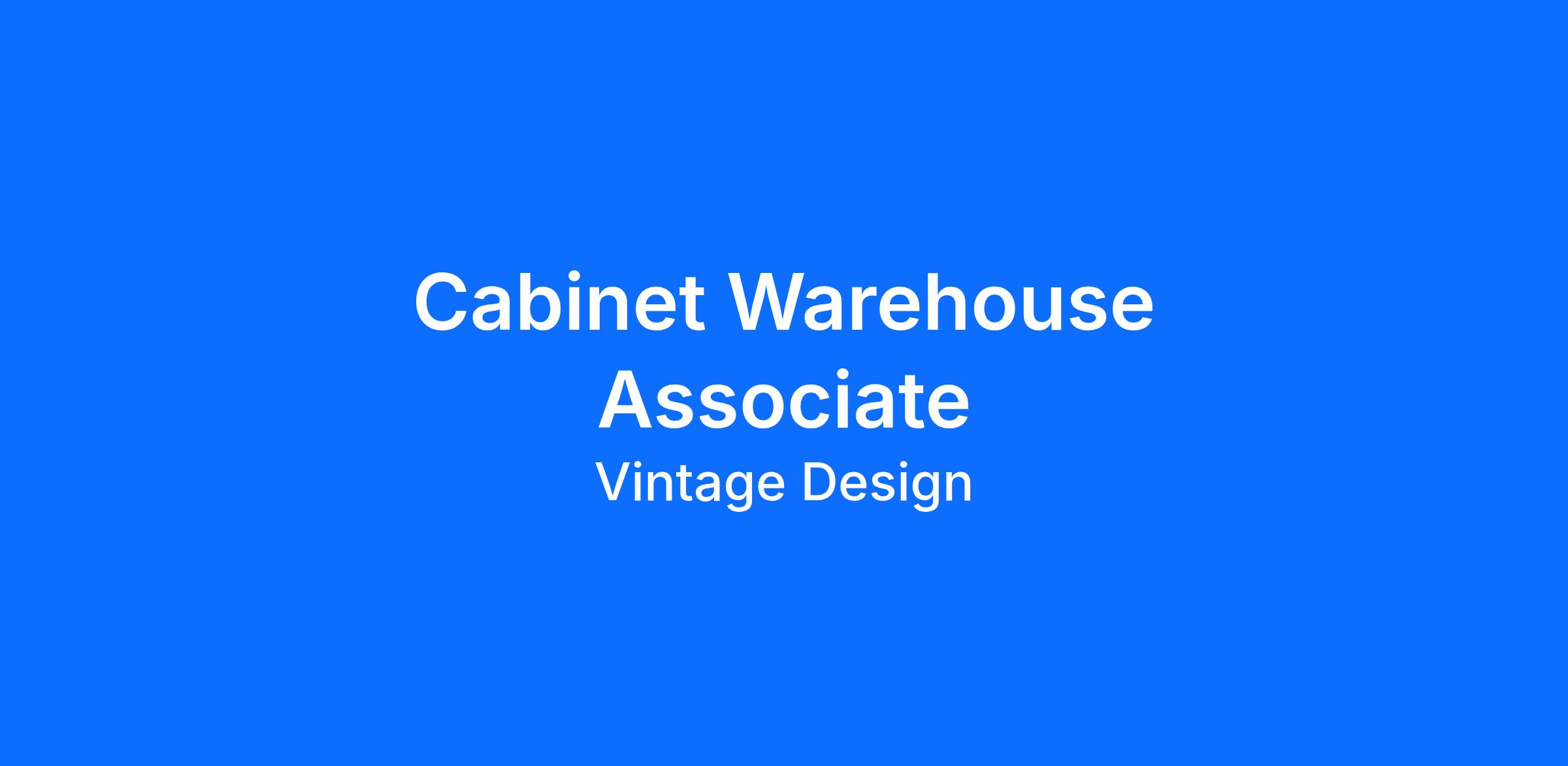 The Cabinet Warehouse Associate has full responsibility for the following functions:
