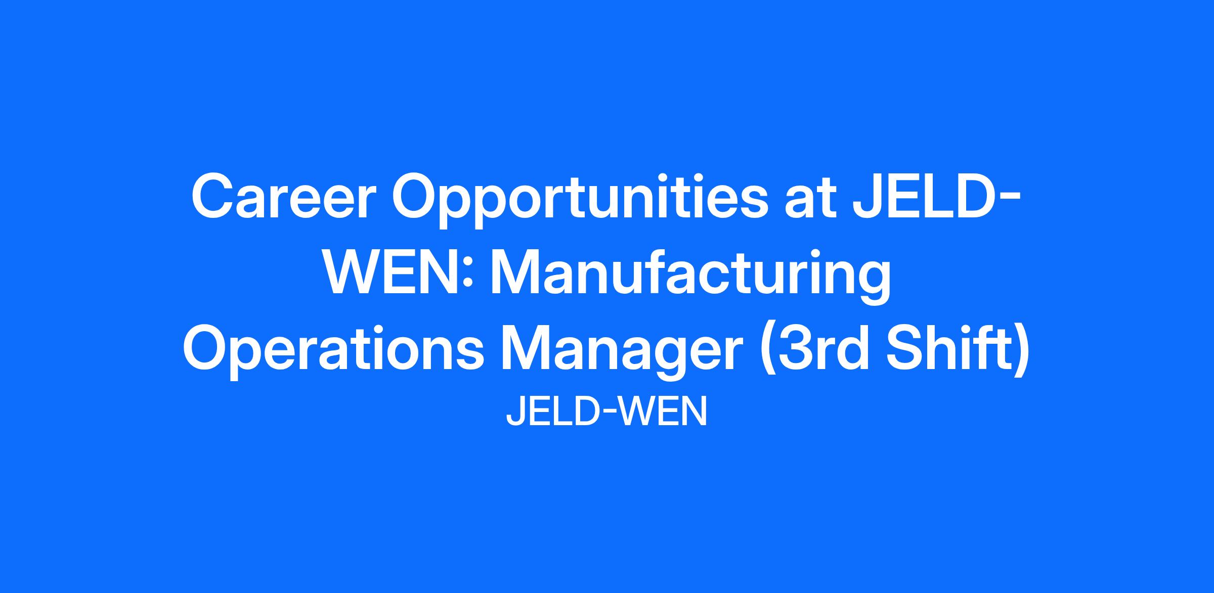 JELD-WEN is currently seeking a Manufacturing Operations Manager (3rd Shift) to join our growing team.